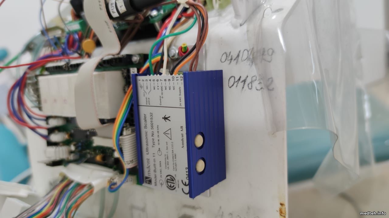 Добрый день, коллеги. Подскажите по скайлеру Amdent built -in 11 в стоматустановке Diplomat DA-130. Не знаю как раньше он работал, но врач говорит, что скайлер не отключается. То есть даже наконечник вставлен в стол врача, он тихонько подсвистывает и если к нему поднести железку он начинает зудеть. Когда вынимаешь из столика состояние не меняется. Когда нажимаешь педаль, зудит сильнее и прыскает вода. Где искать поблему? Почему при вставке в гнездо остаётся управляющее напряжение 10 В ?