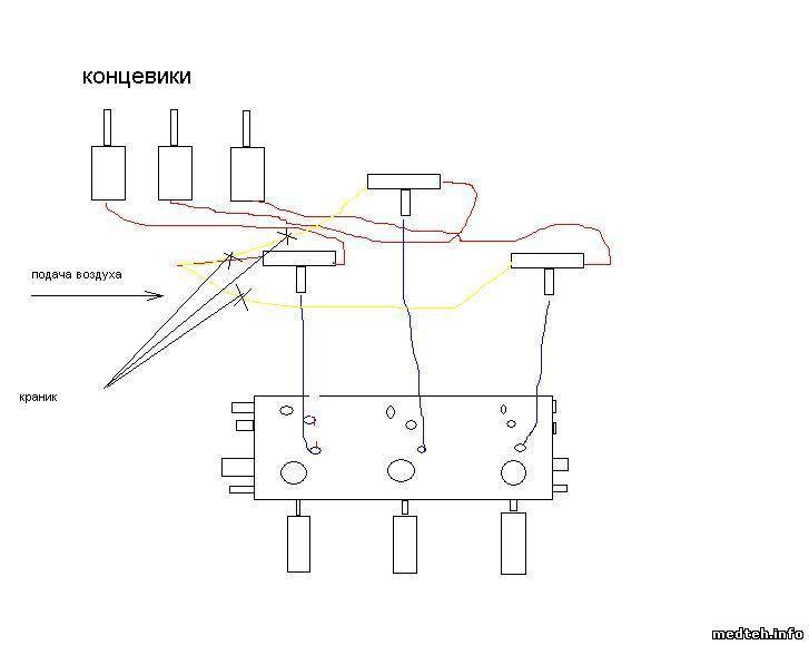 Я пытался подключить гребенку по схеме. краником отрегулировал поток воздуха, чтобы не травило сильно с концевого клапана. Но когда я поднимаю любой шланг, получается освобождаются и другие клапана и работают все шланги! Может у кого есть опыт по установке такой гребенки на американца с такими концевиками?