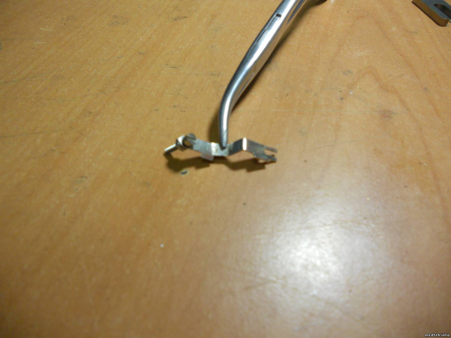 Практически все "кусочки" на месте. Это конструктивно доработанный пистолет "С защитой от айболита" Микрик включает нагрев воздуха, но если забыть его отключить ( повернуть красную пимпу на внешней стороне - с внутренней виден штырёк ), то расплавится капилляр около нагревателя. Здесь удалено коромысло включающее микрик - крепление под синим капилляром между клаппанами.