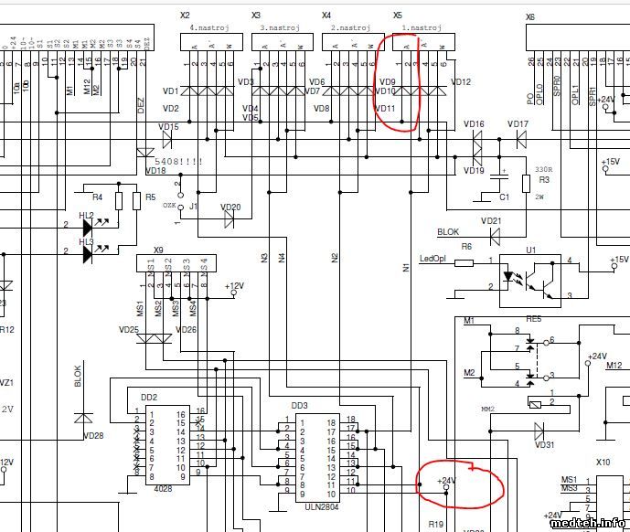 Доброго времени суток. Сегодня столкнулся с такой стоматологической установкой - Neomed Aria. В ней проблема со сгоревшей линией 12 вольт. Причина - не включалась педаль, возможно в ней обрыв. Айболит купил VGA провод от монитора и воткнула в разъём, из-за особенности провода, произошло КЗ. Взорвался диодный мост и сгорел предохранитель. Блок питания восстановил. Все напряжения есть. Но вопрос: какая распиновка кабели в соединения педали? 1 к 1 провод? Разбирал саму педаль. На ней плата, на плате датчики магнитного поля 3-х ногие. Ещё есть в начале диод и на другой стороне фотоприёмник. От датчиков идёт опторазвязка на оптопарах. На магнит реагирует только крайний датчик. Срабатывает реле, на материнской плате загорается hl3, рядом ещё горит hl1. hl2 не горит. Как я понимаю, чтобы запустить бор насадку, нужно, чтобы все сигналы пришли на материнскую плату. Так? ... Двигатель там постоянного тока? ... Просто при потуге на себя бора - срабатывает реле и есть небольшой продув воздуха лишь, сам бор стоит. Что дальше делать? Паять кабель 1 к 1 VGA папа-мама? Может ли сгореть оптопара в педали? Помогите, пожалуйста! ... Дмитрий
