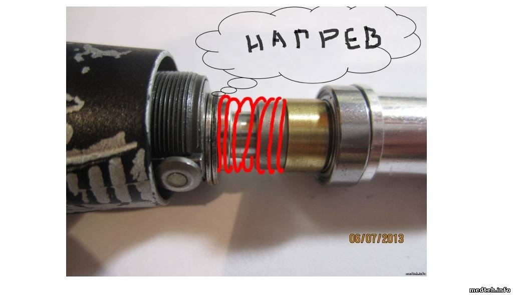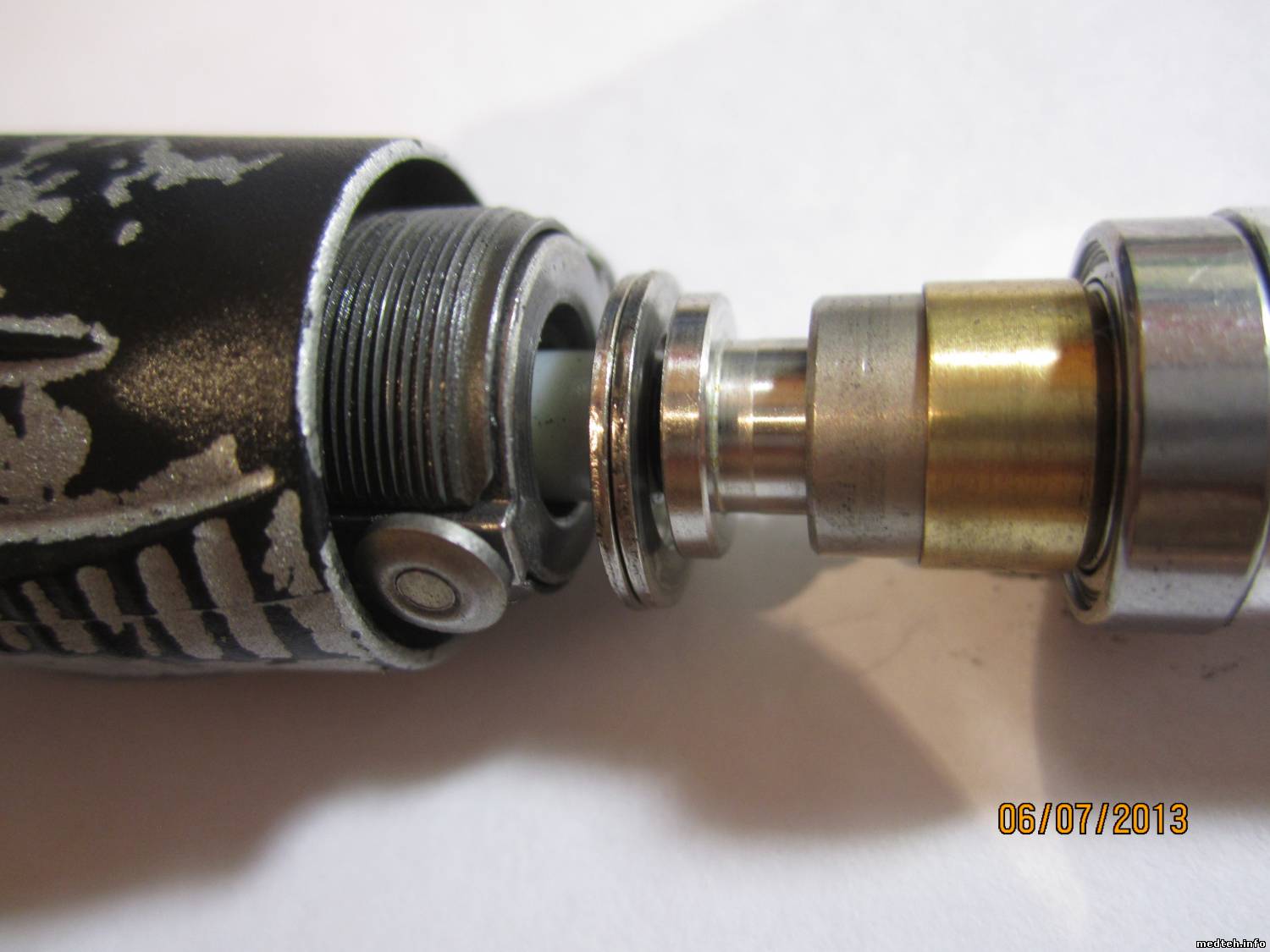 если вручную крутить за вставленную в собранный наконечник фрезу , вал должен вращаться свободно(с новыми подшипниками без инерции), нигде скрипов/хрипов/закусываний быть не должно.