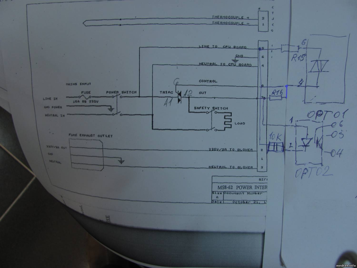итак, пришлось взятся за ремонт. "Мозги" вроде целы. Триак постоянно открытый. Оочень нужны номиналы обвязки R15?R16? Оптосемистор OPT01?, оптопара OPT02, и что втыкается в JP8? На плате не родные.