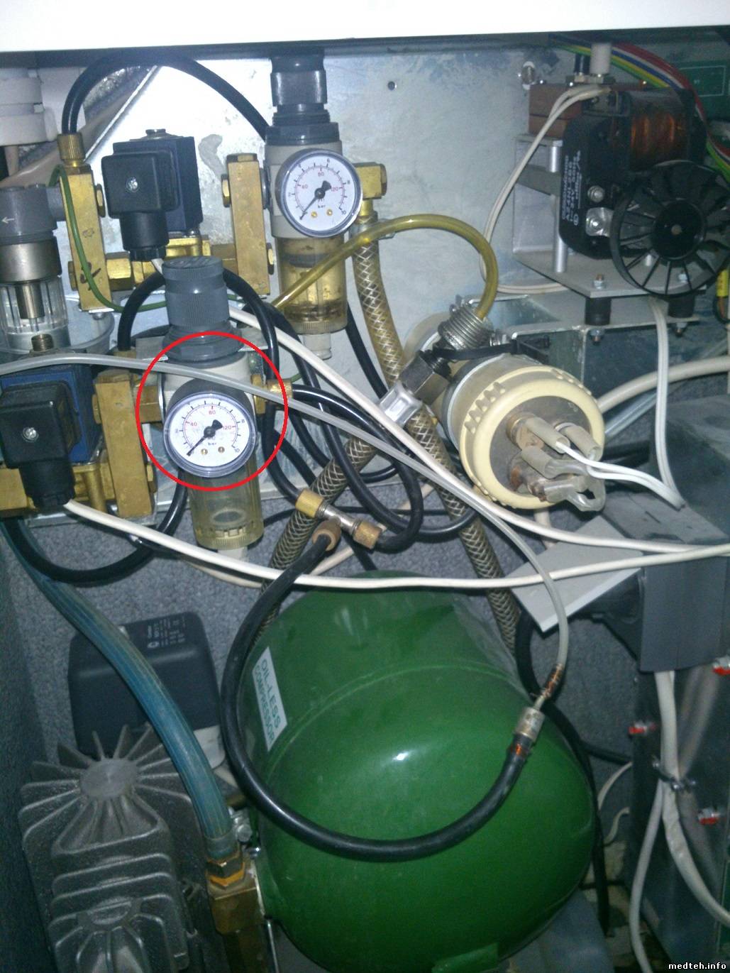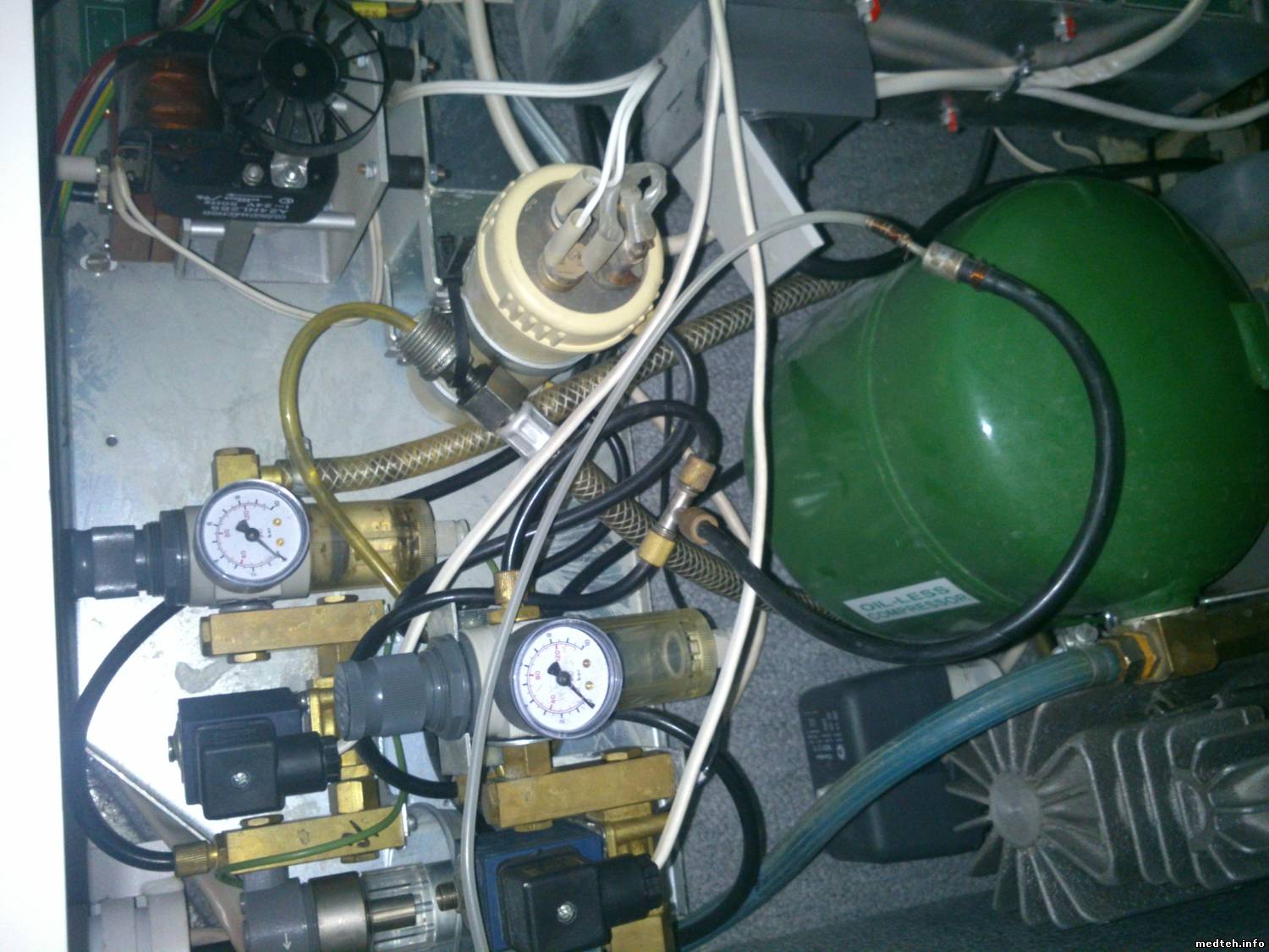 Слюноотсос там не эжекторный.. Справа вверху над компрессором стоит двигатель с крыльчаткой,кот.включается при поднятии слюника.Вакуум он создает через белую пластиковую ёмкость (на фото её не захватили).