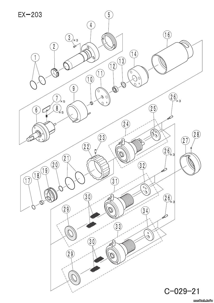 Коллеги, подскажите, как разобрать воздушный мотор NSK EX-203. Отвернул три винта со стороны углового наконечника, снял фланец. Под ним спец гайка с двумя диаметрально противоположными пазами. Взял съемник стопорных колец попытался открутить, ничего не вышло. Что надо сделать? Может нагрев поможет? Мотор очень грязный и не смазывался около года.