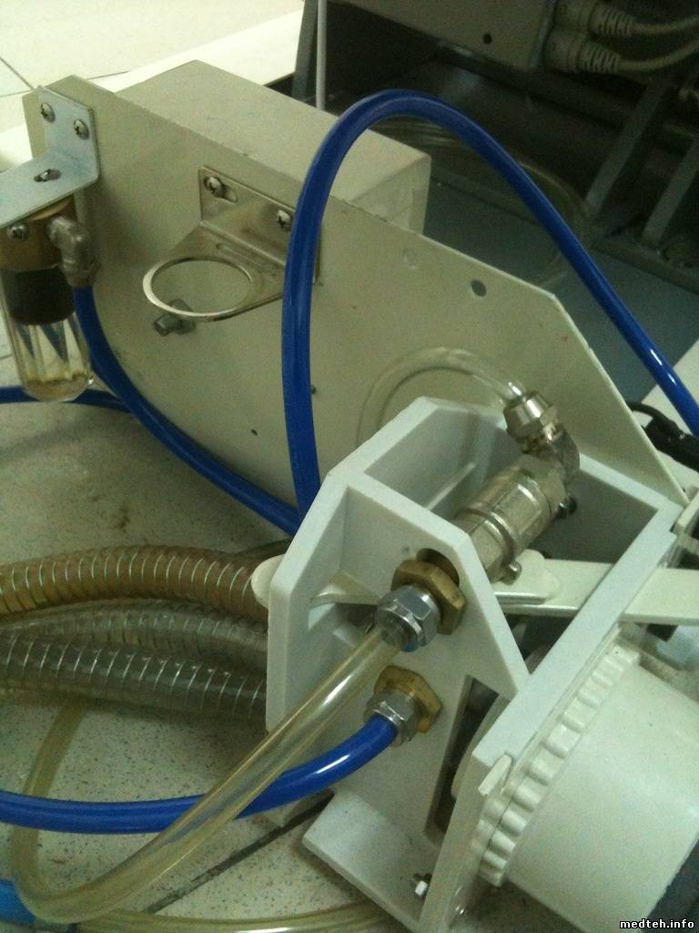 (фото 1) за три с половиной тысячи долларов США. Бывает с верхним подводом (фото 2) и другим гидроблоком (фото 3). Подвешенная сверху китайская диодная панель оживляет обстановку (фото 4). Радует наличие главного выключателя, отсекающего электропитание, воздух и воду (фото 5). Недостатком считаю размещение фильтра-влагоотделителя под креслом ( персонал ленится поднимать кожух ), поэтому иногда переношу фильтр в гидроблок (фото 6).