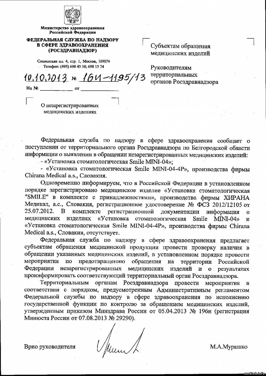 levscha, Читай здесь http://www.roszdravnadzor.ru/registration/cimn_cards/search, распространяется на все отделения по России. В строке наименование изделия забиваешь Smile и он все выдает.