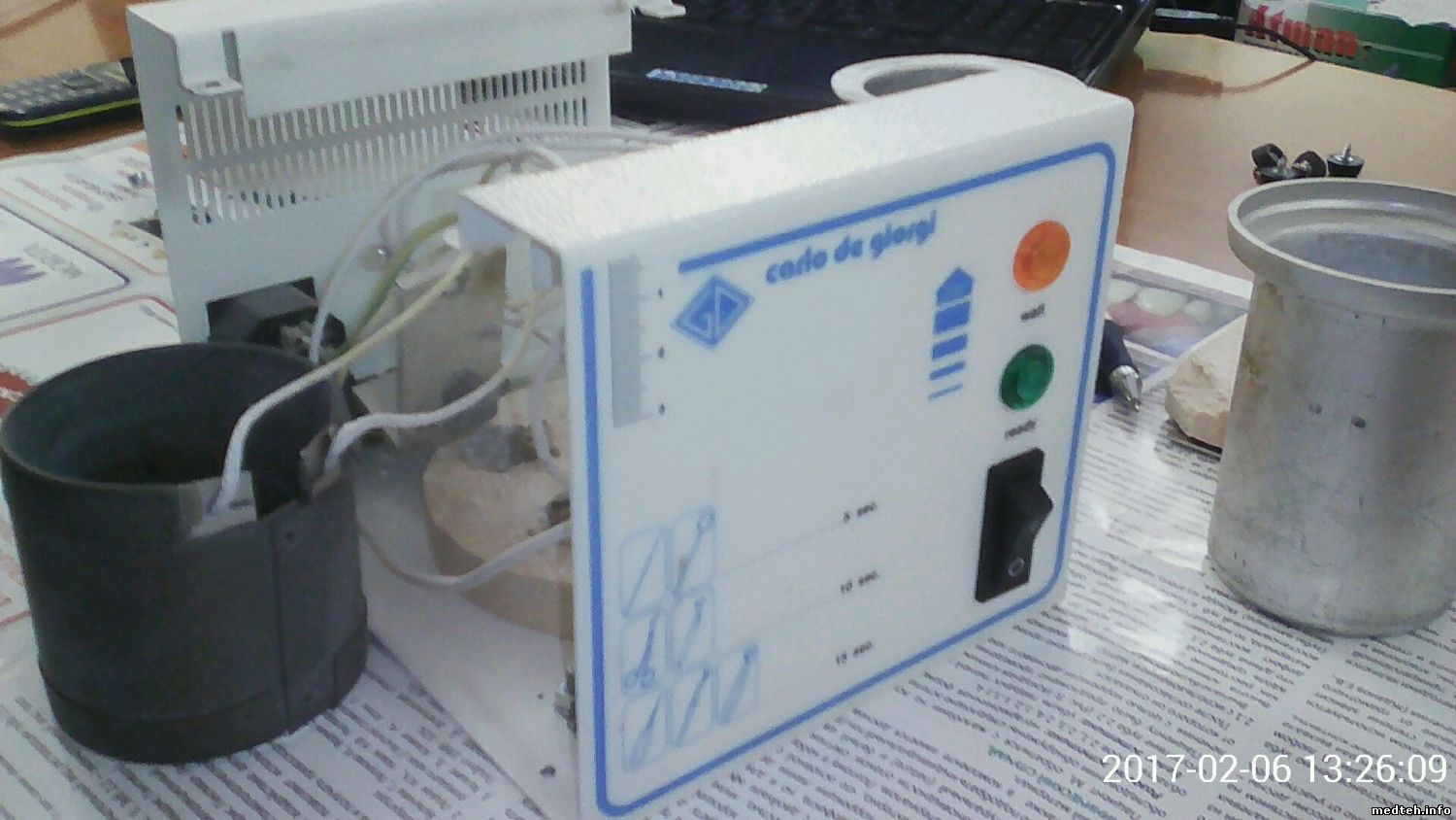Разобрал гласперленовый стерилизатор Cario de Giorgi Maxi Steril 714/00 по причине отсутствия нагрева. Причина - обрыв нагревателя. Нагреватель выполнен в отдельном блоке (см. фото). ТЭН уложен в слюдяном "пироге" и закатан в латунную обойму, по конструкции видно, что укладка спирали в блоке не кольцевая, а змейкой или вообще цельная нагревательная пластина. Выход вижу только в намотке новой спирали на основе этой латунной обоймы..