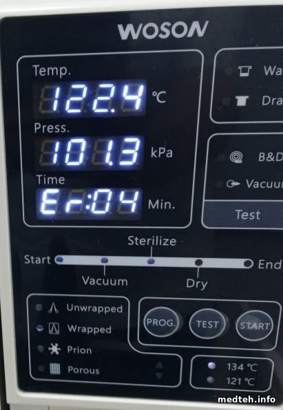Выдавал ошибку "05" при сбросе пара после стерилизации. Наблюдал, что давление упало до 0,5 и потом показал ошибку "05".