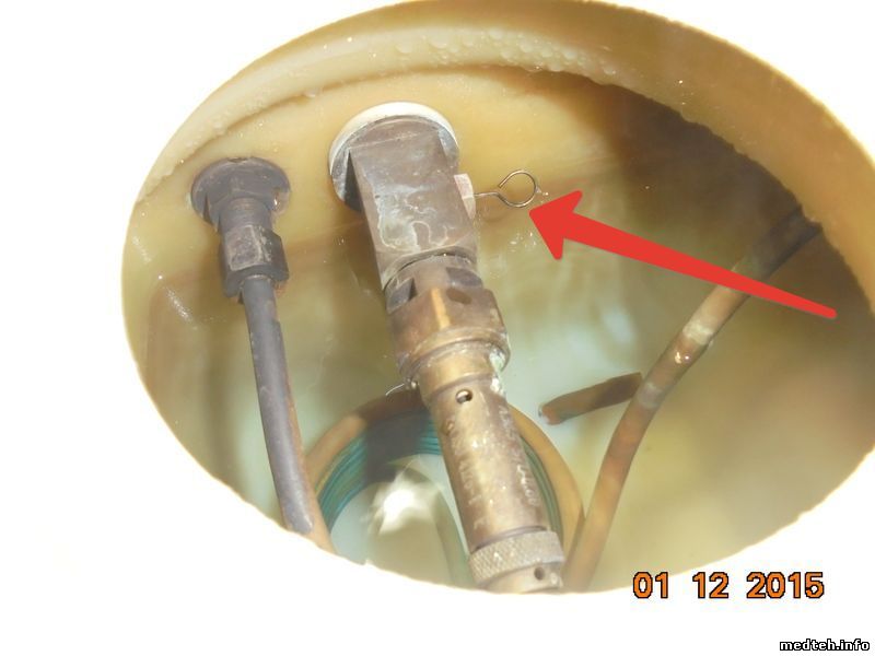 Перед предохранительным клапаном в бачке с дист. водой расположен жиклёр, предназначение которого не совсем мне понятно. Во время работы на 20-ти минутном цикле, через него травит пар, следствие - успевает выкипать вся набраная в камеру вода, срабатывает тепловуха и "поджариваются" медизделия. Менять или чинить (и как)?