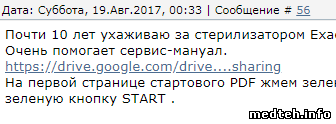 Понимаю, что эта тема обсуждалась уже давно! Если кто знает, подскажите, пожалуйста, пароль в сервисное меню парового стерилизатора Exacta S 17л