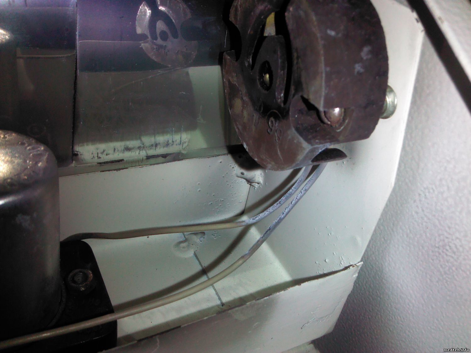 ещё одно фото о воздействии ультрафиолетового излучения и озона на проводку - при касании светильника провода сами отвалились , на корпусе видны следы КЗ - аппарат с давно истёкшим сроком эксплуатации