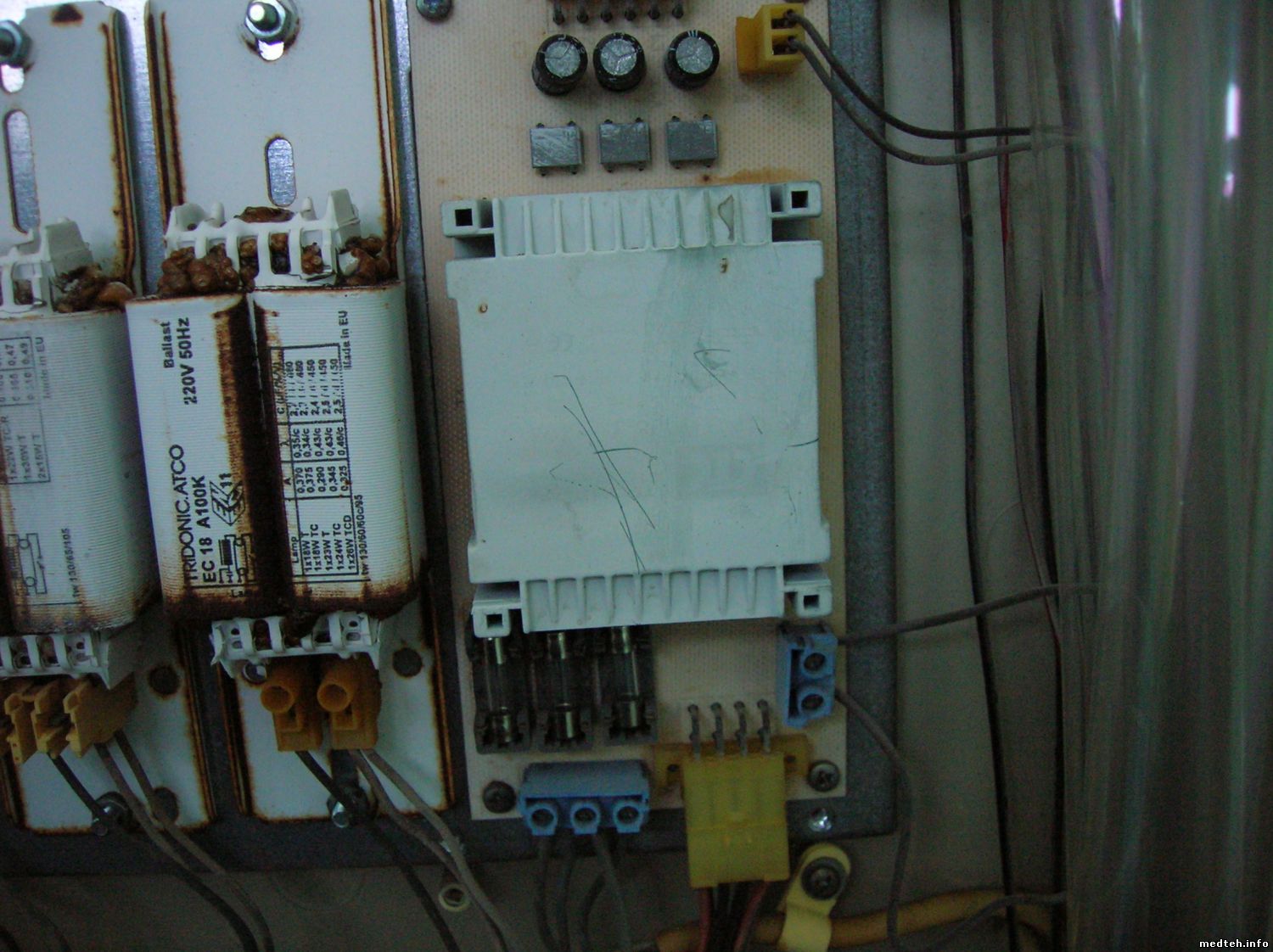 По остальному: при замене на балласт функциональность не меняется. Таймера и какого-то индикатора исправности вентиляторов в "Дезаре 3" нет. По схеме аппарата (сообщение №2) светодиоды индицируют только наличие напряжения на лампах, а не их правильную работу. Для проверки работы лампы нужно просто глянуть на воздуховоды или просверлить в передней крышке корпуса небольшие отверстия напротив ламп (ну и для "полноты счастья": - а вдруг какой-то пациент будет долго смотреть на эти отверстия, для защиты от УФ вставить в эти отверстия прозрачные глазки или заклеить их прозрачной пленкой) ...
