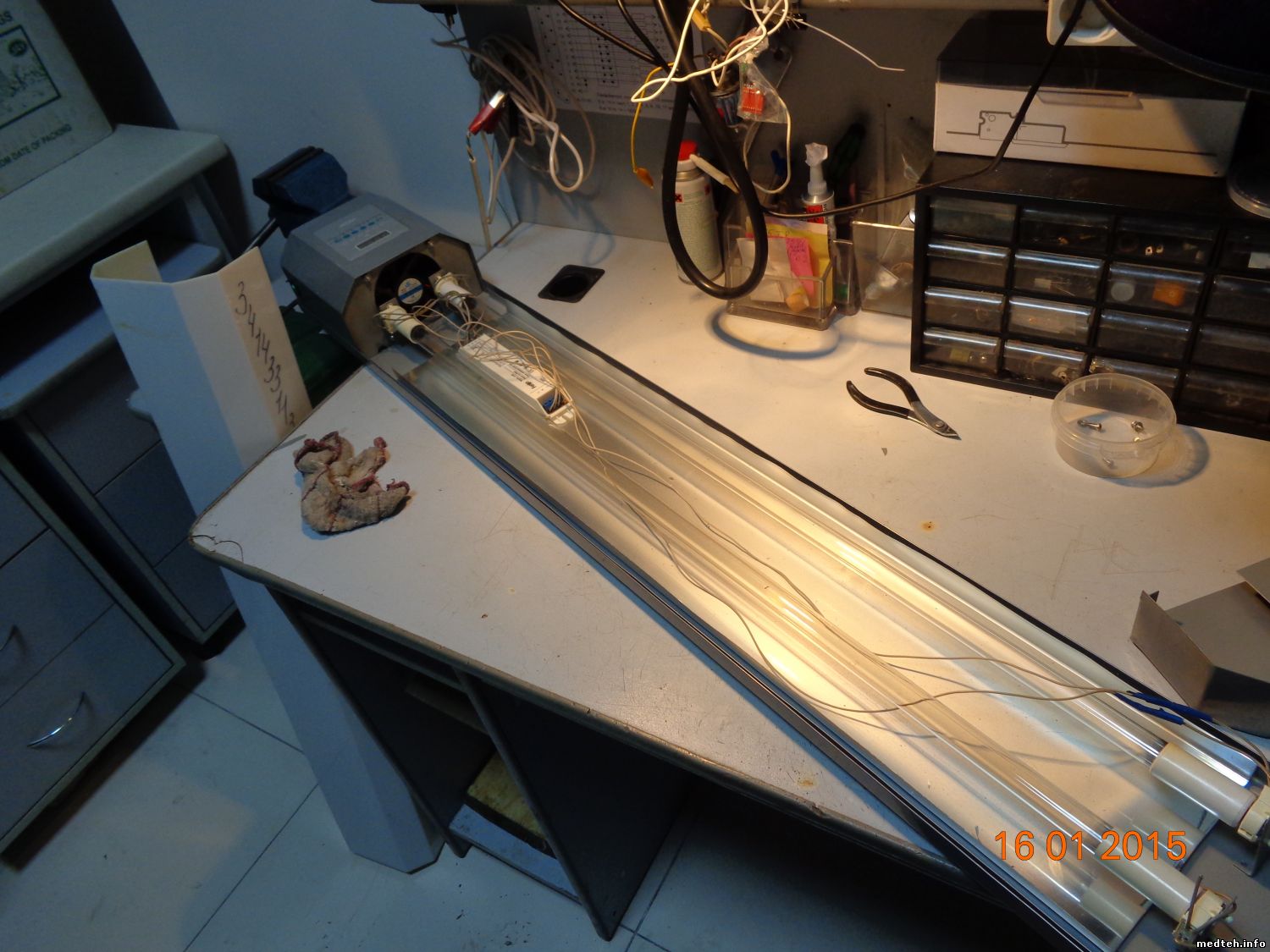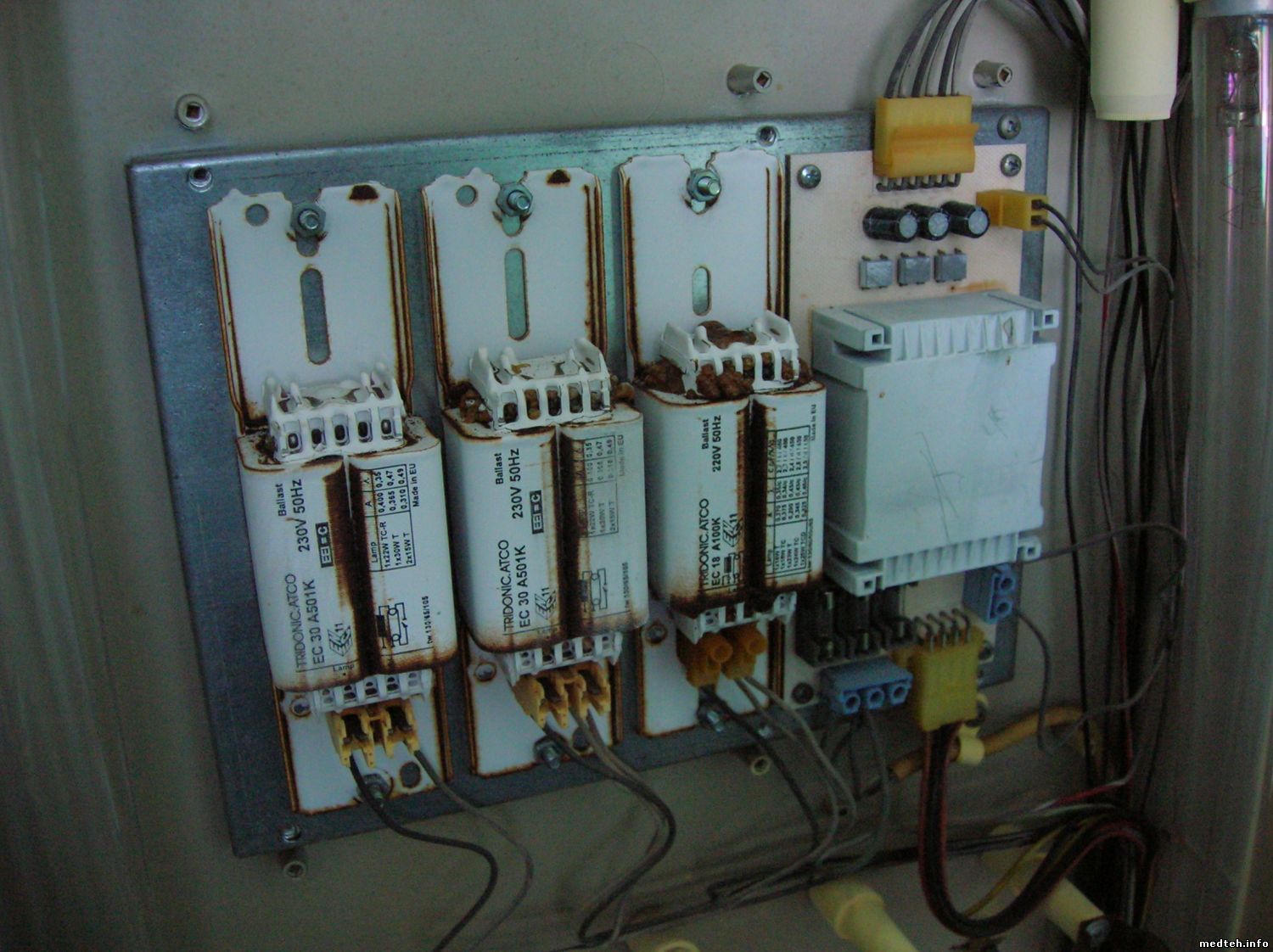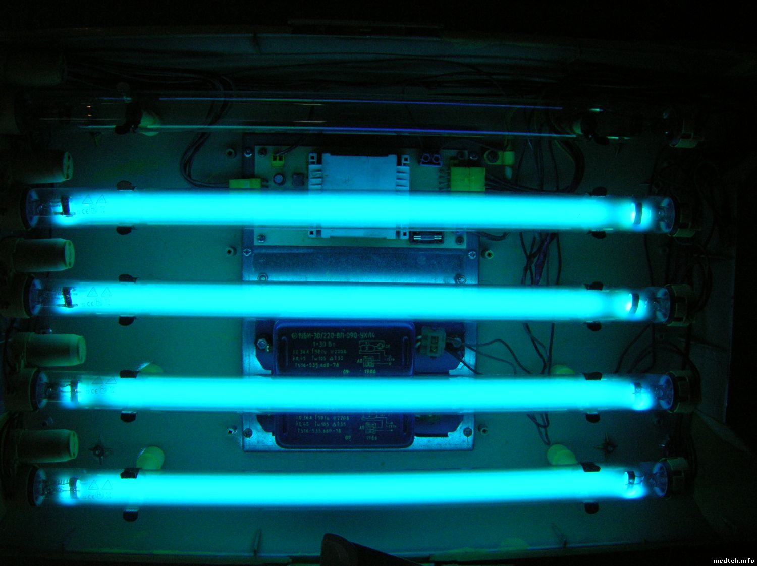 Сейчас. при возникновении неисправностей, запитываем УФ лампы от электронных баластов (в любом электротехническом магазине продаются по 100-200 руб), вентиляторы - от блоков питания (типа зарядок) на 12 вольт, или собираем простейший блочок. Когда медики "привередливые" и хотят еще и "цифирки" видеть - добавляем цепь питания на 5вольт.