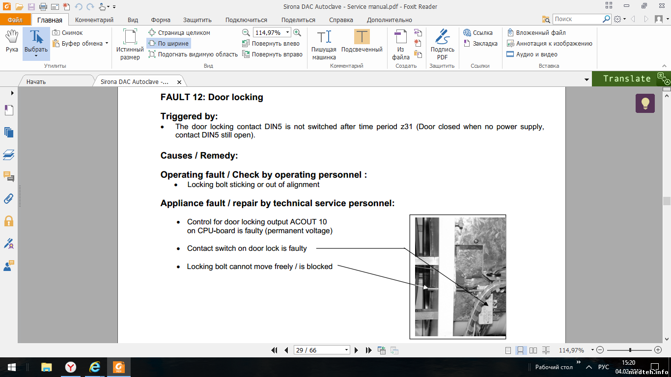 Добрый день! У нас паровой стерилизатор Euroklav VS 23+ постоянно выдает ошибку 12 дверной запор. Уже несколько мастеров приглашали не могу понять почему они не решили данную проблему( Все исключительно подтягивают нам петли и подкручивают сам замок в дверке, но ни кто не заглядывает внутрь стерилизатора там, я так понимаю, есть детали которые тоже участвуют в запирании? Может кто-то подскажет?