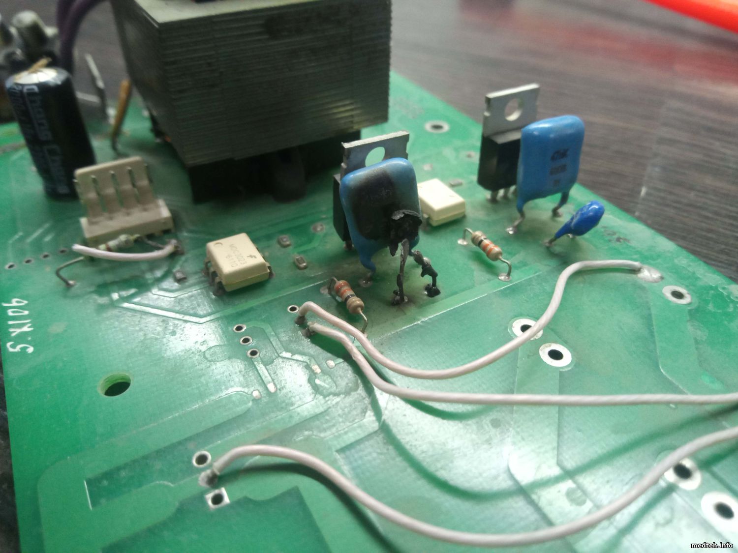 Никак до компа добраться не мог. В общем перепайка кондера 16v 2200uF, варистора и пленочного конденсатора на плате коммутации решила проблему. Отгорел силовой кабель на тэны, из-за колхозного соединения.