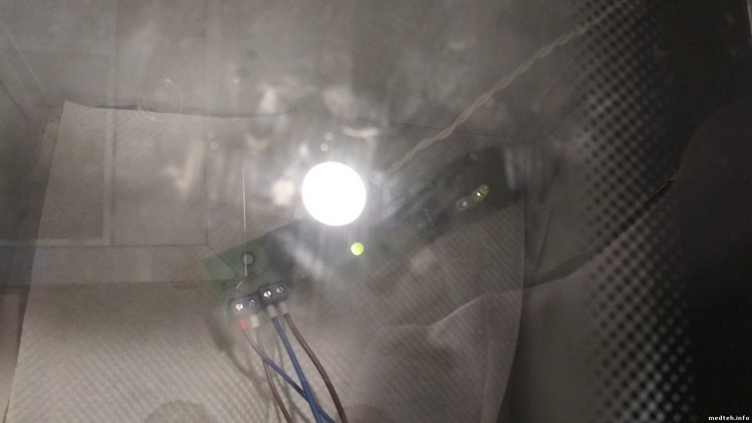 Посмотрите геркон на дверце (блокировка лампы при открывании двери)