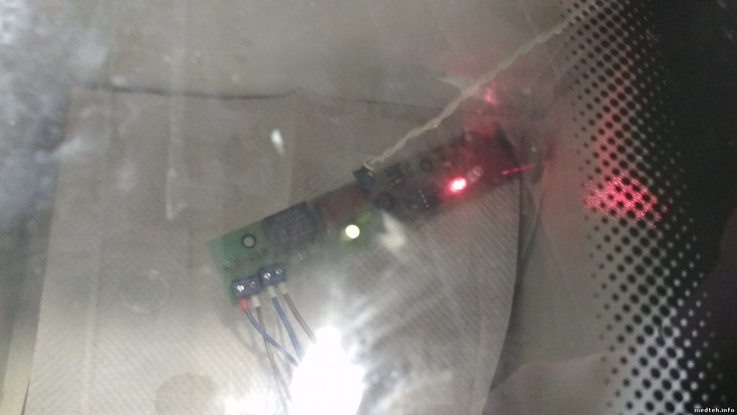 отдельно на плате(ближе к реле) Если горит красным светом, то это значит