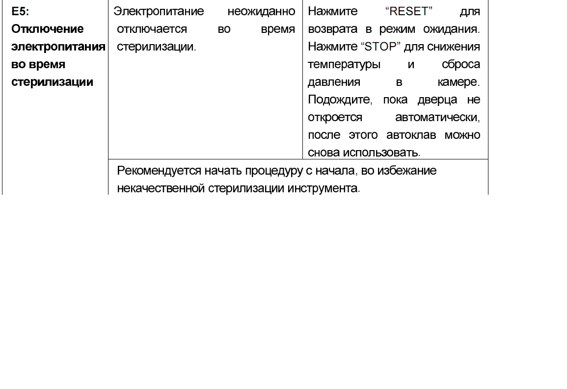 | Выключается, это как? Прекращается цикл, пропадает или обнуление индикации, во время чего; наполнения камеры водой, нагрева, стерилизации, сушки?