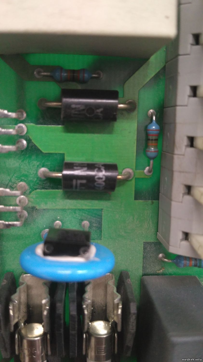 Коллеги,прошу помочь разобраться! На аппарате Stericell 111, 2004 года выпуска при запуске выходит ошибка 1 ("Er 1") . Может кто сталкивался с такой ошибкой? По мануалу на аппарат нашел информацию,что ошибка 1 соответствует неисправности подвижного датчика а (PT2),а именно ошибочное соединение датчика PT2 с регулятором на дисплее. Проверил все соединения,все нормально. Полез в плату управления ,убрал слой пыли и обнаружил 2 резистора немного подпаленные, замерил сопротивление,оба по 942 Ом,, схемы нет,так и не могу разобраться где эти датчики находятся( их там вроде как 4),предполагаю в дверной обшивке аппарата,но не уверен, и в чем проблема? Датчик или что-то с платой? Ранее с такими аппаратами не сталкивался, только пытаюсь разобраться, кто может подскажет,фото в прикреплении. [p.s.] резисторы по маркировке как бы на 220 кОм