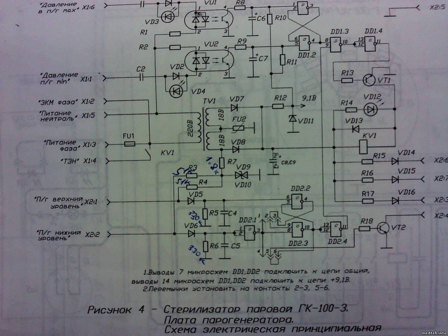 Господа, вопрос такой: в обоих одинаковых автоклавах гк-100-3 с вот такой платой управления, даже если воды нет, то всё ровно типа есть...в руководстве написано: если автоклав работает на водопроводной воде необходимо R3,4 заменить на 12ком...заменил, и толку НОЛЬ!!!!!!!!! датчики вычистил, аж блестят как у кота бубенчики, кстати о бубенчиках...танцевать с бубном работая со схемой которую нужно паять в мастерской а не на коленях за 300 км от оной, просто нереально...хотелось бы от разработчиков услышать внятный ответ, что делать? рядом стоят 2 автоклава гк-100-3 но со старой платой, так вот датчики никто и никогда ни разу в жизни там не чистил, но смею вас заверить всё работает как надо! почему блин в нашей стране всё новое хуже старого? зачем было изобретать велосипед? вот только пожалуйста не давайте ответа: типа попробуй это и то...нет у меня времени на то и это( в ТО конструктивные изменения не входят)...мне нужно конкретно, сделай это и всё...да забыл, схема работает...если провода от датчиков отцепить и замыкать по очереди на корпус всё отлично, как по теории... biggrin