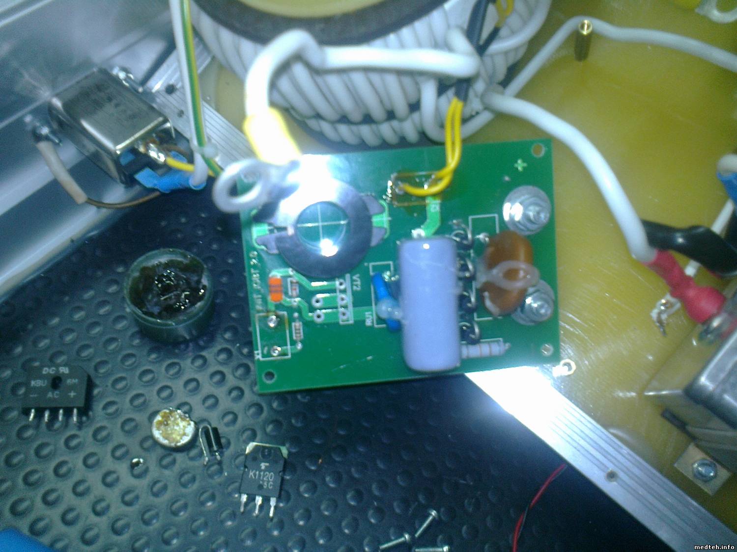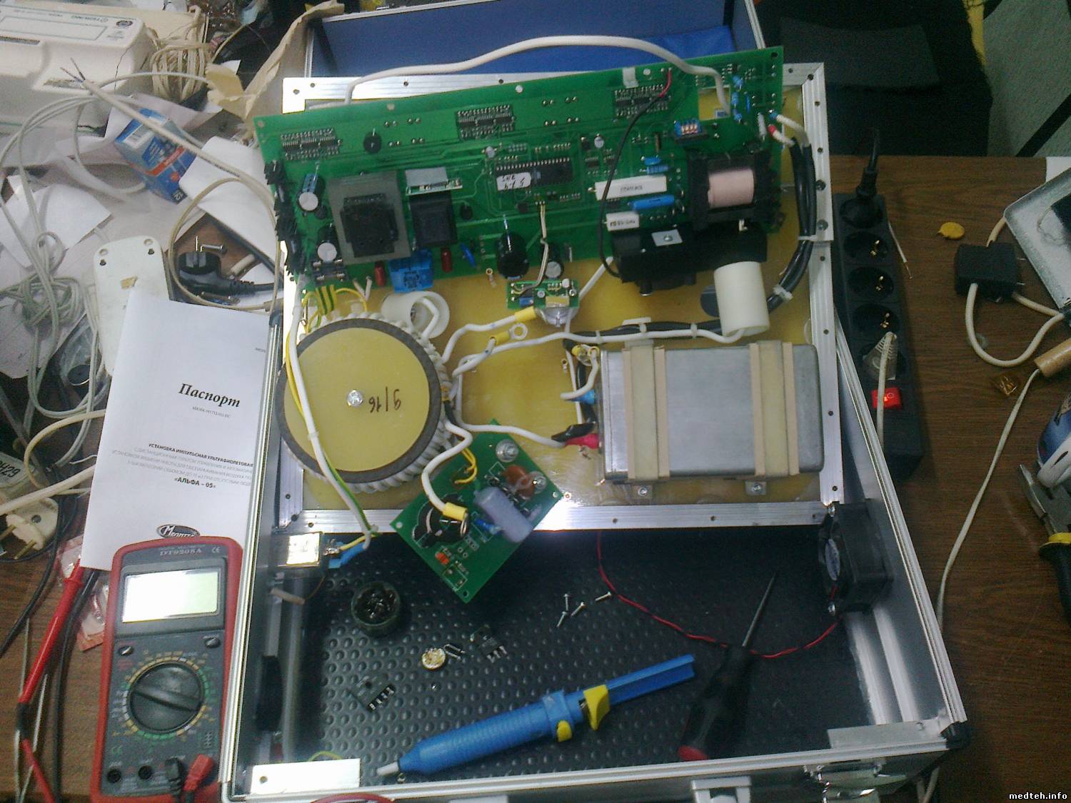 Ищу эксплуатационно-техническую документацию или подсказку, есть аппарат для обеззараживания воздуха Альфа-5 http://www.melitta-uv.ru/production1/perenosnaya-ustanovka-alfa-05, при включении выбивает предохранители и транзистор К1120.