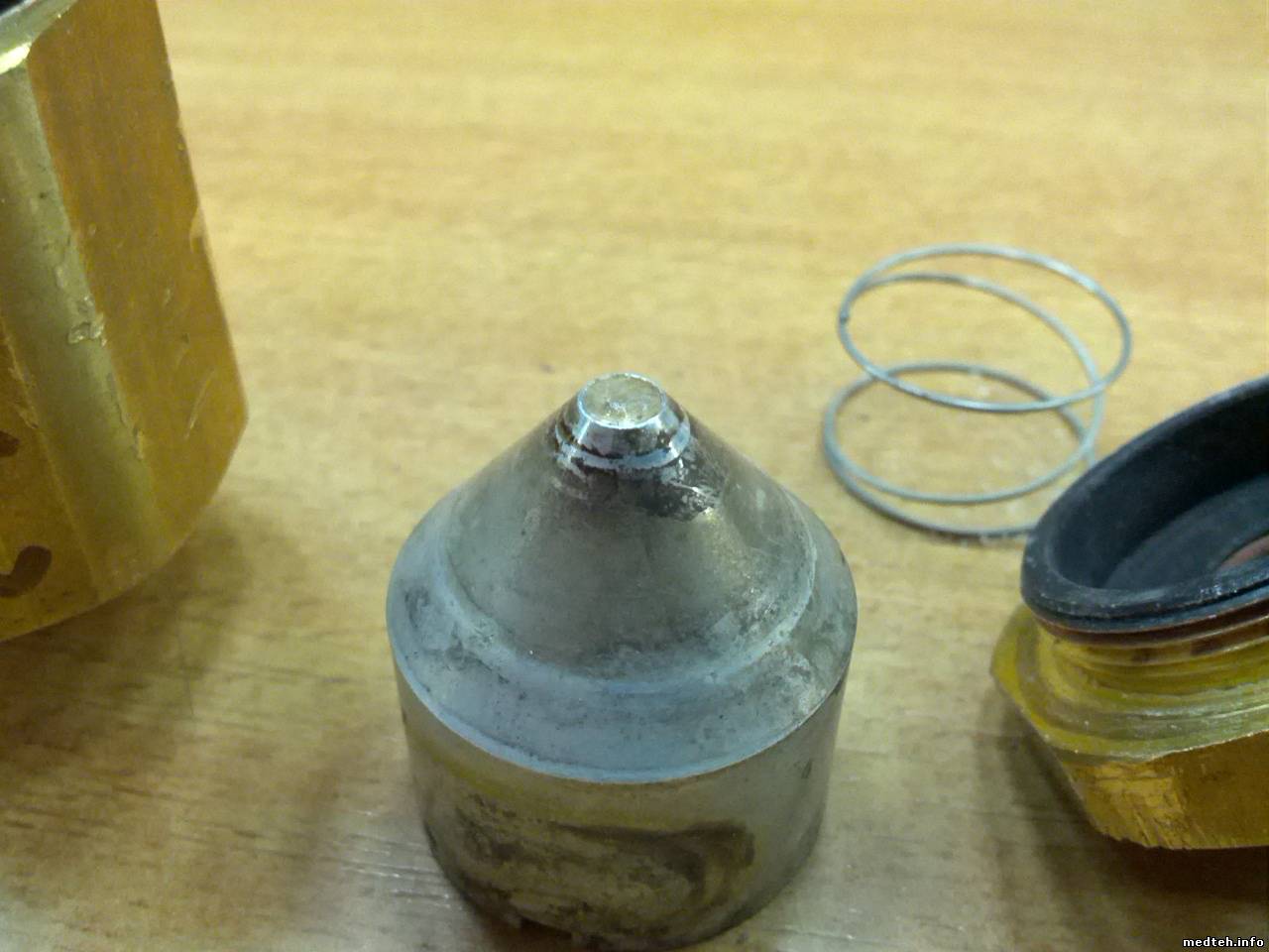 Здравствуйте товарищи. Просто очень много работы,зашиваюсь!Суть:Прибор старый(7-8 лет)мастер не заглядывал ни разу.Открылся на сушку и вылил воду на стол(не сбросилась в бак)-это вылечил.При работе программы доходит до начала стерелизации и вырубается с ошибкой 0000-перегрев камеры.Ошибка проявляется не всегда и на разных этапах цикла но,в основном в стерилизации.Инструкция описывет ошибку и предлагает почистить малый клапан(всего их три,два электрических и один механика или биметалл),этот малый сливает остатки воды и давления в бак.И как еще один вариант ремонта-регулировка температуры в камере.Клапан чистил(он был реально забит отложениями,работает нормально).Не нравится мне механический клапан,снял его но,разобрать на месте не получилось$IMAGE3$.Вопрос;как разобрать и есть ли смысл?Ну и как регулировать температуру и как ее мерить в камере?
