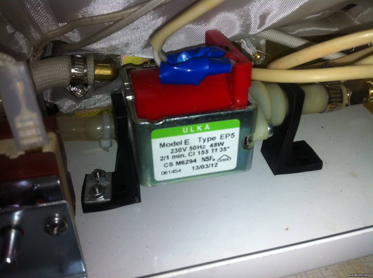 Доброго времени суток! Прошу помощи: сталкиваюсь с данным стерилизатором впервые (о какой модели речь?), да, и до этого со стерилизаторами не приходилось иметь день. Проблема, в принципе, похожа на описную ранее: стерилизатор не набирает температуру, доходит только до 55-60 градусов, после, где-то, часа работы выдаёт ошибку Е9. Вначале после такого цикла, камера была сухая. После переборки помпы, температуру стал набирать чуть выше 60-65 гр. и стала оставаться вода в камере после цикла. Во время цикла стерилизации помпа и клапан работают циклично и греется сильно верхний клапан (на фото). Так и должно быть, и в чём может быть причина?