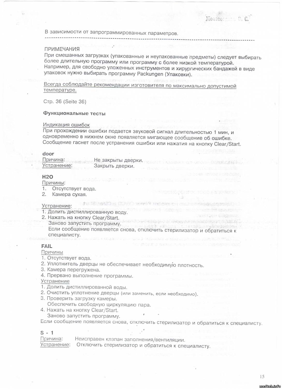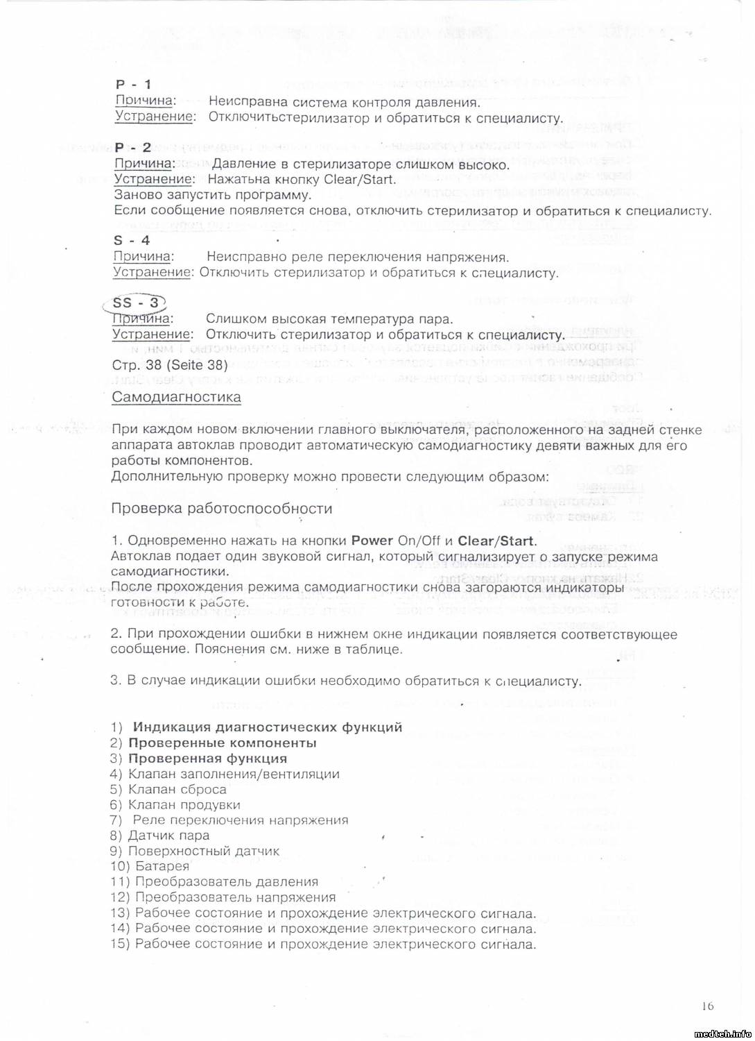 Ошибка S5-2 нигде не упоминается. А вообще то при нагреве камеры (до стерилизации) ошибка H20 (сухая камера). Клапана проверены и вода в камере ЕСТЬ (проверено).