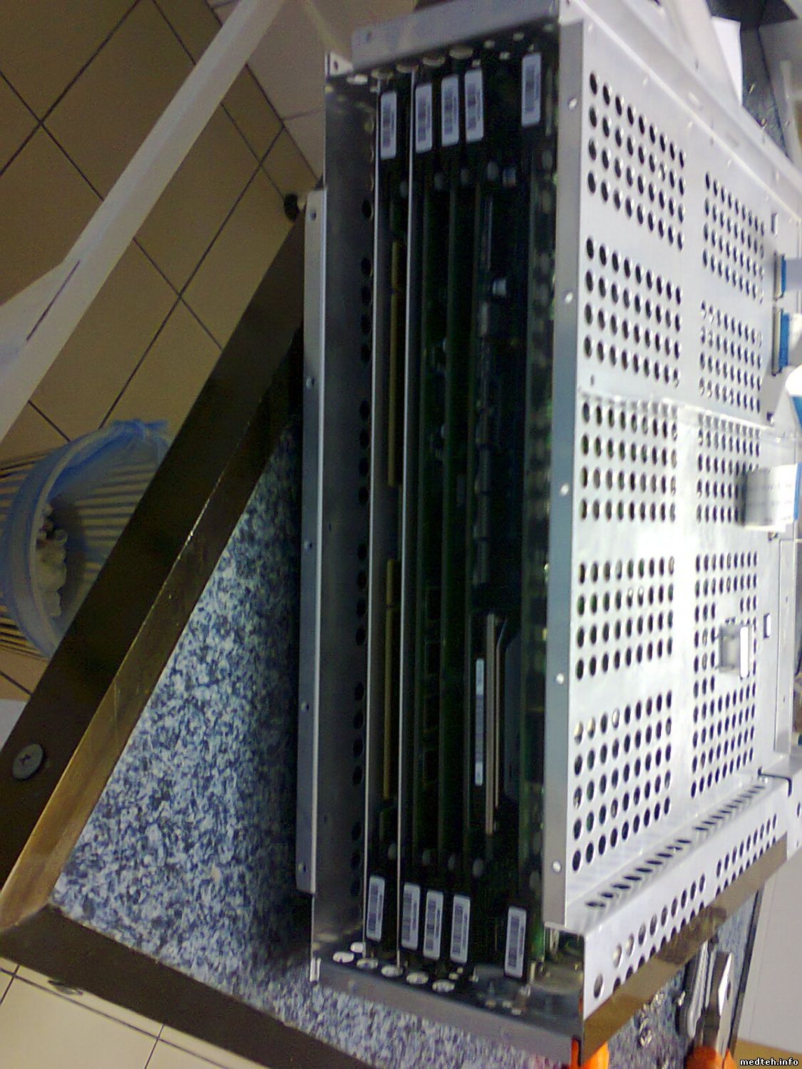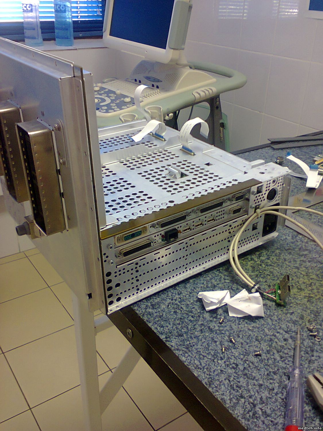 В разборе MyLab 40 Vet действительно нужно приложить усилия! Все как обычно, снимаете панели боковые, вентиляторы, берете в руки шестигранник "4ку" что бы снять заднюю решеточную панель. Далее шестигранник "5ка" что бы достать основной блок!(предварительно отсоединив датчики) Блок перед вашим взором! Начинайте выкручивать пластиковые дорожки которые находятся снизу блока. Далее выкручивается все до не могу, кроме передней панели с датчиками...ее напоследок. Выкручивая usb порты столкнетесь с тем что болты и задница(гайки) отъемлемые части! Старайтесь их не упустить потому как весь корпус решеточный(было такое при сборе пришлось перебирать да бы достать гайку которая закотилась к системным платам). Далее снимается привод, верх боковинки, задница(выкрутив штифты разъемов) В принципе все, остается перед вами сам корпус системника с передней панелей датчиков(и еще на корпусе плата с портами) ее отсоединяем предварительно разъединив шлейфы и еще там обнаружите под ней два болта!(их полностью выкручивать не нужно - они только зажимают!) Фото некоторые есть но будет продолжение!!! И так, передняя панель датчиков, выкрутить придется не мало но нужно! Выкрутив все, когда она будет погуливать не бойтесь размыкать ее по краям(довольно плотно сидит в портах) После снятия передней панели вы увидите 6 плат которые сидят в разъемах внутри. Верхняя это видео, вторая это собственно мать с процом, винтом и батарейкой!(если аппарат взяли на чистку не бойтесь забыть последовательность!! перед вашим взором есть фитинги с помощью которых вы достаете эти платы и на этих фитингах отображены с лева серийные номера а с права номера плат, НО если левые фитинги посмотреть с обратной стороны то вы будете видеть конкретно куда плату совать!!!! а когда вы взглянете внутрь там возле разъемов будет подпись куда что и как!) Вытаскивать материнку и видеокарту придется предварительно отсоединив правый бок с портами(отключить все)!! В принципе аппарат разобран!(задницу мы не трогали потому как смысл?) Сделав необходимые моменты далее идет сбор! Вот тут я столкнулся с одной проблемой(по мимо того что болтик один остался лишним - на удивление думал будет больше) Первый раз, вставив все платы я только затем вставлял переднюю панель - итог(При запуске аппарат дал ошибку что системная плата отсутствует или повреждена) При повторном разборе я выбрал другой путь, я поступил иначе, изначально две нижние платы я подсоединил к передней панеле с датчиками и только затем я вставлял их в корпус(да сложно но наверняка!) Когда они заехали до упора тут мы включаем режим "Геракла" - сзади и спереди давим!!! Сзади все безопасно а спереди не бойтесь давить ладошкой на реле(вынесли напряжение мышц))))) Когда убедитесь что все вроде норм можно посмотреть по бокам вхождение плат в отверстиях корпуса!!! Далее все собирается в обратном порядке ТОЛЬКО НЕ ЗАБЫВАЯ ОБ USB ПОРТАХ(а именно их гайках!!!)