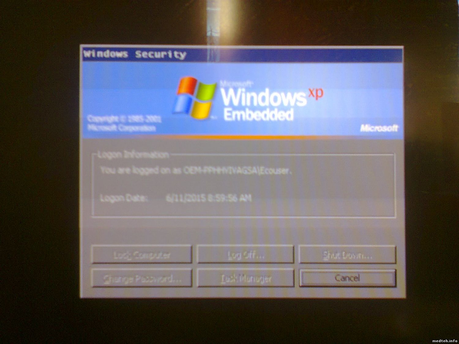 при загрузке зажмите шифт дождитесь окна ввода пароля пользователь RS пароль EO73FI теперь через диспетчер задач убивайте процессы esaote Вы внутри системы в корне диска С есть забавный файл manufctrng.pwd
