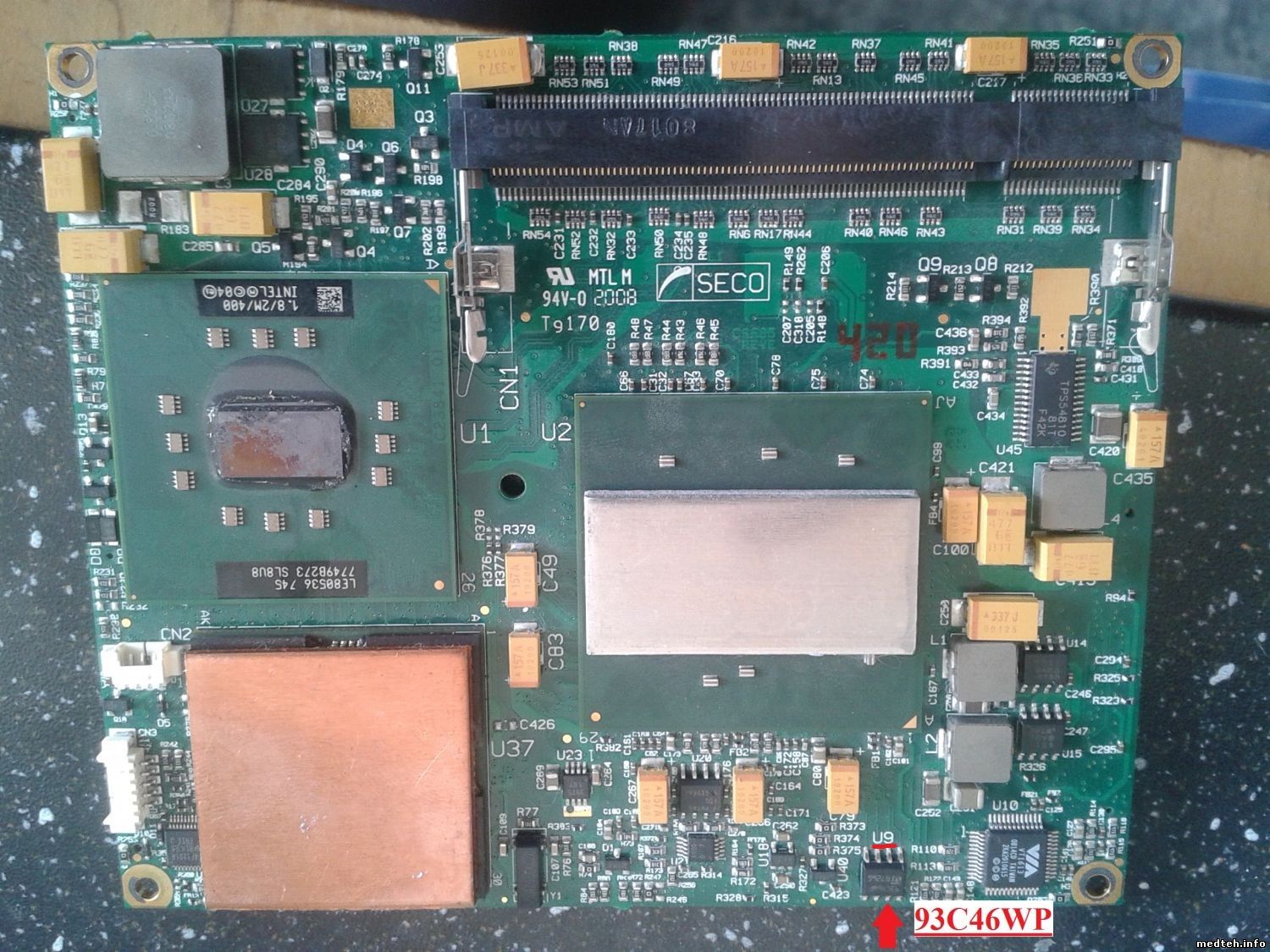 Биос находится в микросхеме sst49lf004b!!! u33 ее программатором Вы не сможете считать, так как в ней записаны ее серийный номер и "прошивается" она по LPC c установкой нулевых битов для записи. Что бы она вышла из строя нужно еще постараться!! срок эксплуатации данной флешки (по даташиту) более 100000 часов за весь срок она никогда не выйдет из строя!! проблема в данных аппаратах когда садиться батарейка или вы отсоединили эту "процессорную плату" от материнки где находиться батарейка, Вам необходимо ее заново обновить (прошить). когда вы загрузились в систему (демо- часть функций у вас не работает), нужно войти в биос и обновить дату и время, или заново обновить прошивку. как это делается, написано в сервис мануале! прошивку на биос могу поделиться на машинку PC 7350