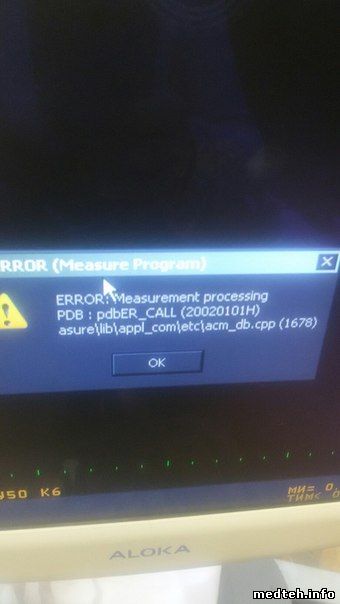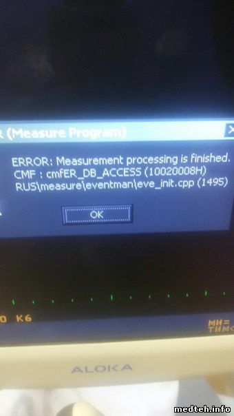 Alex-ALOKA, спасибо за совет перезагрузить базу данных!!! Заработало Проблема решена, всем спасибо за отзывы! Сбой базы данных измерений или повреждена файловая система на диске (50/50). Preset -> [Ctrl+Q] Система спросит: "А Вы уверены, что хотите уничтожить базу измерений пациентов?", отвечаете: "ОК", Система должна пойти на перезагрузку. Если проблема была с повреждённой базой, то должно помочь. В случае повреждения файловой структуры диска поможет только замена винта. Для корректного выбора версии ПО (их много разных) нужен СЕРИЙНЫЙ НОМЕР.