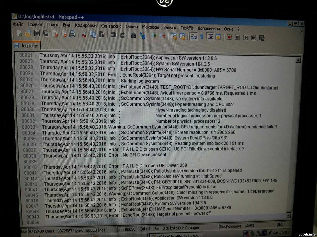 Добрый день! Имеется постоянная проблема с узи vivid e9. На всех датчиках во всех режимах: мигающий горизонтальный артефакт в форме полоски шириной примерно 3 см, делающий чуть светлее изображение на этом участке. Что было сделано: в external service проведены все тесты. Без ошибок. В логах тоже ошибок нет. Далее восстановили образ сорта рабочий и даже накатили с ключом софт с такого же аппарата того же года. Артефакт остался. Подскажите, что ещё можно сделать. Спасибо заранее.