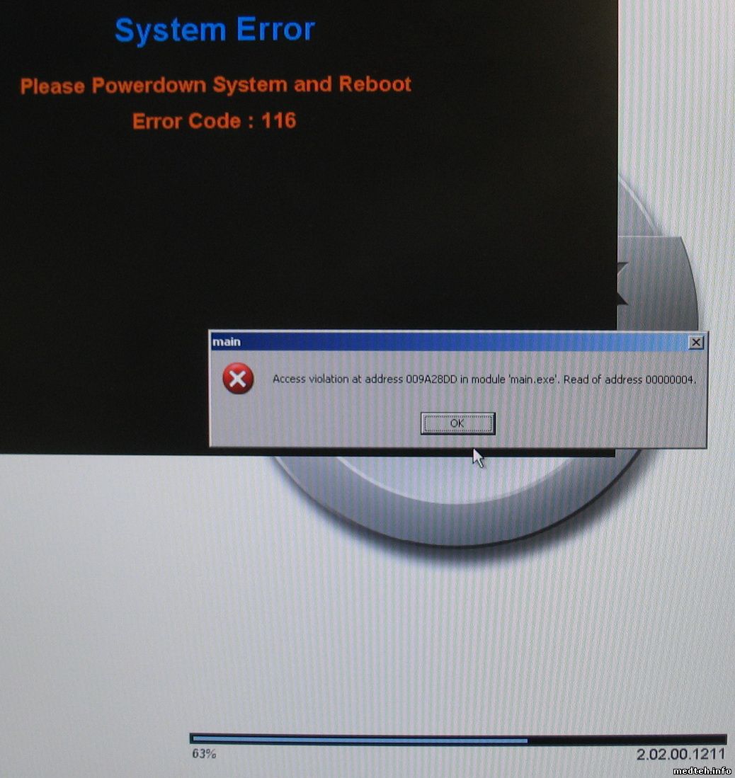spartanec87, первая ошибка выскакивает на одном проценте загрузки именно УЗИ софта, сразу после нормальной загрузки ОС. Похоже, что происходит обращение к УЗИ железу, но ответа нет. Переткнул шлейф между компом и УЗИ, платы УЗИ, после чего несколько раз загрузился нормально. Но периодически ошибка возникает.