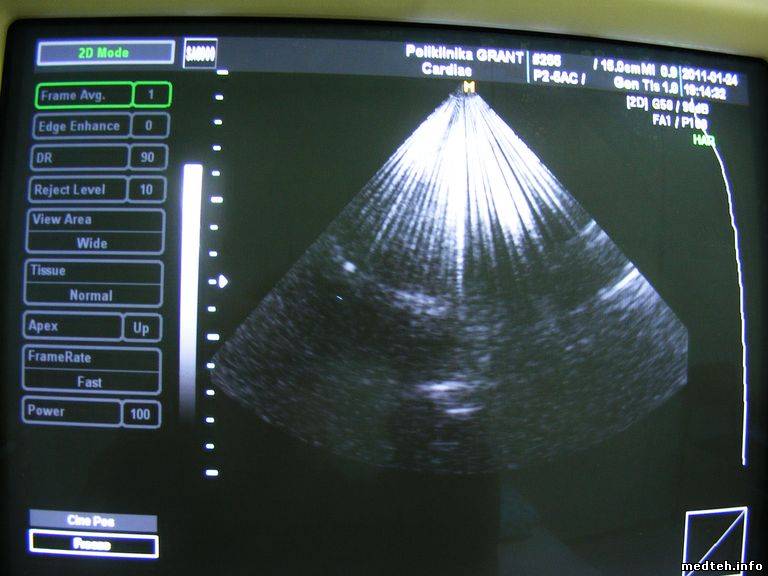 На фото где помеха более интенсивная сверху, работет кардиологический датчик, на фото где помеха слева идет к низу по всему полю сканирования работает гинекологичекий датчик.