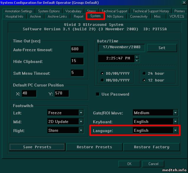Имеется УЗ аппарат Vivid 3 c версией 3.6. Софт переустановил аппарат УЗИ запускается, работает, но он на английском языке. Имеется ли у кого опыт перевода на русский язык или какой либо русификатор! Подскажите, пожалуйста, где найти русификатор и как его залить в аппарат.