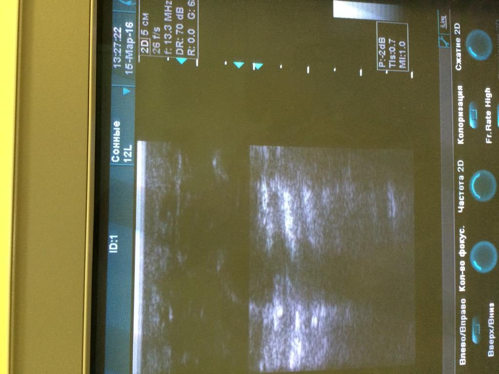Аппарат Vivid 3 Pro корпорации General Electric Company (производственно-торговый бренд - "GE"), США, 2007 года. При работе на конвексном и линейном датчике появляется картинка как на фото. Если убираю фокусные зоны либо понижаю частоту дефект пропадает. Датчики вставлены в разные разъёмы. На конвексном есть небольшой порез акустической линзы, линейный без повреждений. Предполагаю, что дело не в датчиках. Подскажите, в чём может быть проблема? Если у кого-то есть сервис-мануал на этот аппарат, пожалуйста, выложите здесь или напишите в личку. Доступа к хранилищу у меня нет.