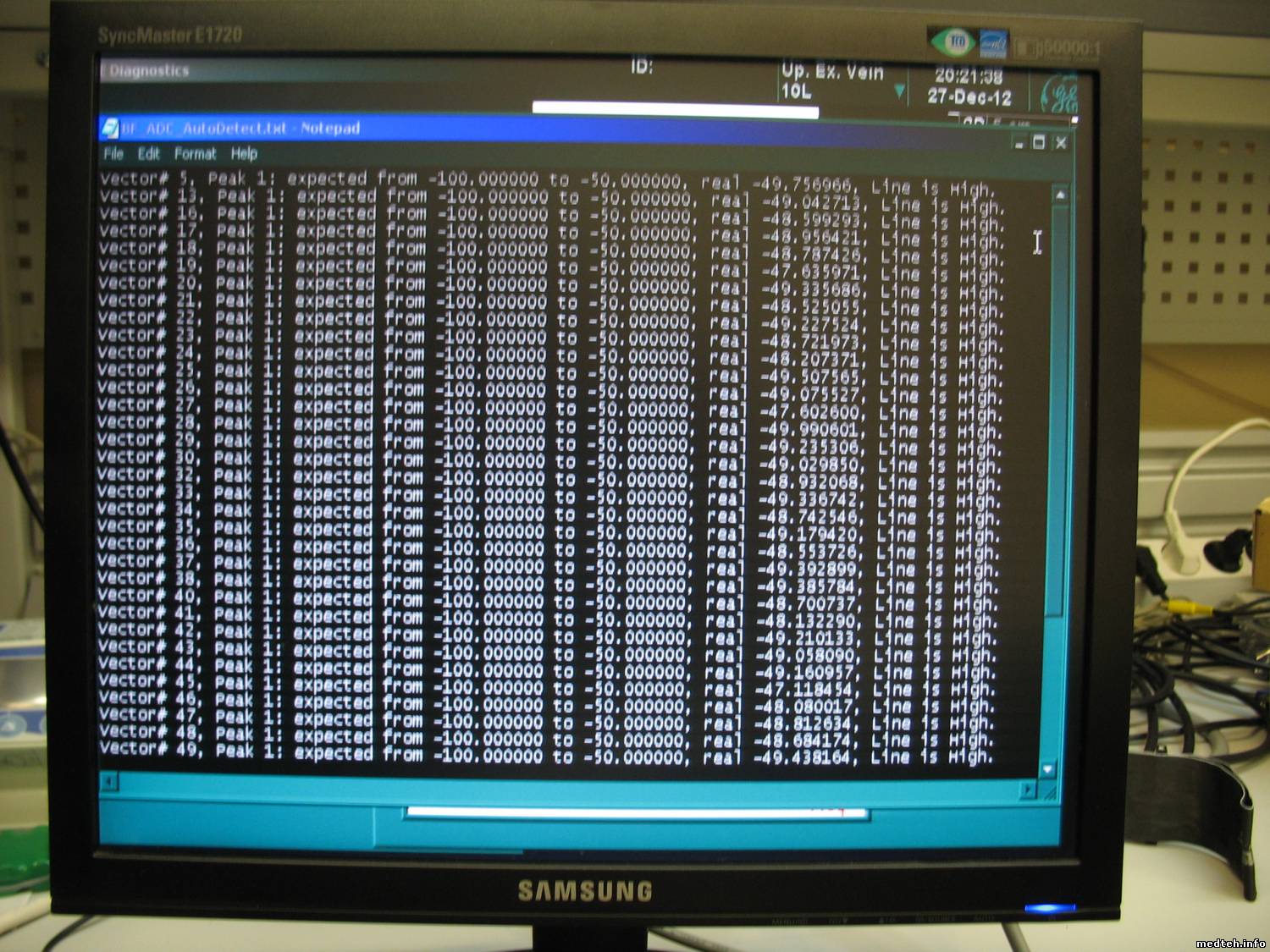 Аппарат очень болен. У него есть как минимум 3 неисправности: 1. После проверки Чек Диском, исправления ошибок и замены нечитаемых секторов, к последнему разделу Swap пропал доступ см. Рис. 1. 2. Тест платы FB, показал, что в одном из каналов завал, и предложил заменить одну из плат TP4 См. рис. 2. Поменял платы местами, результат тот же. 3. Тест платы BF, выдал ошибку цифровых тестов См. рис. 3. 4. В бычном режиме картинка см. рис. 4. Если немного согнуть плату BF, то на изображении пропадают треугольники см. рис. 5, 6. Одновременно при сгибании платы исчезает ошибка АЦП BF см. рис. 7, 8 в след. посте.
