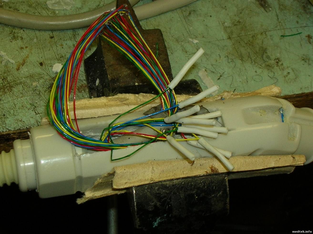 Поделитесь опытом как отремонтировать оболочку кабеля датчика УЗИ, и как можно разобрать этот датчки. Оболочка повреждена почти внутри защитной втулки, датчик пока работает нормально. Сейчас пока замотал изолентой , но это только до завтра , потом забираю датчик на ремонт, и прошу совета у бывалых, как это сделать лучше?