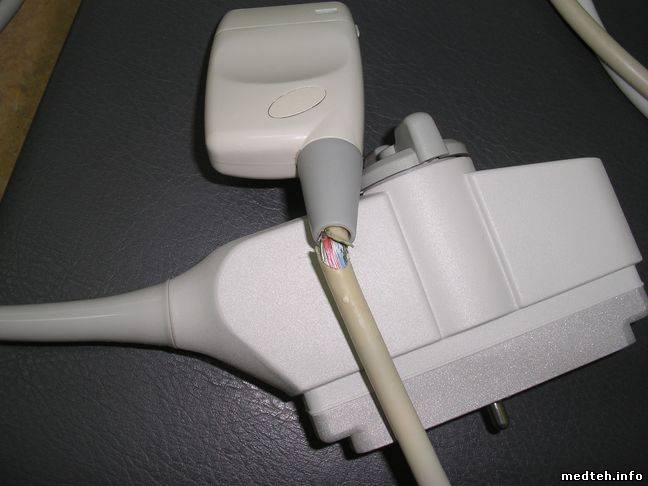 Я прошлый год разбирал конвексный датчик от УЗИ Филипс HD-3, сначала думал что обрыв в кабеле, разобрал прозвонил кабель, оказалось вылетели пьезоэлементы. Собрал датчик обратно и вернул в больницу, сказал чтобы покупали новый. В кабеле провод тоньше волоса, так что ремонтировать его проблемно.