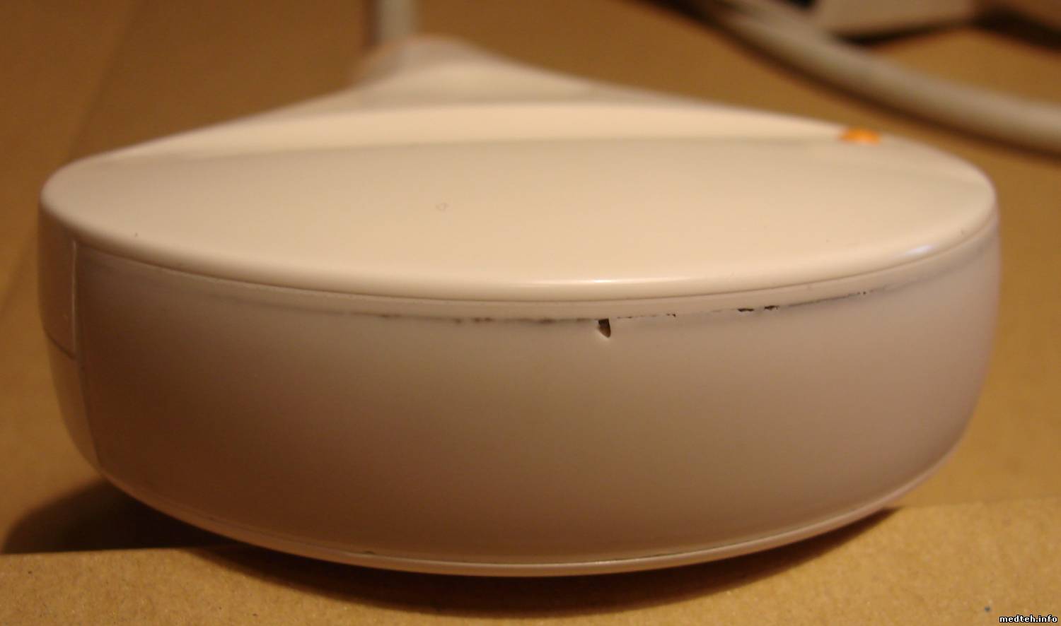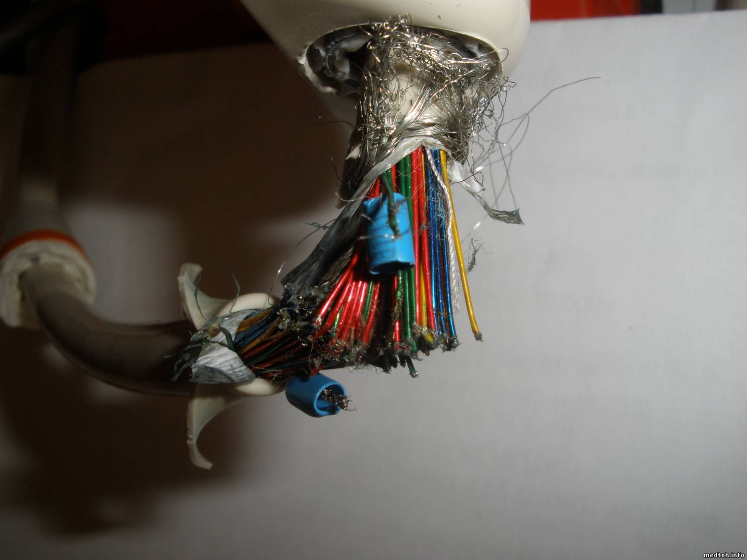 У аппарата Medison Accuvix V10 на конвексном датчике порвалась изоляция у самого корпуса. Теперь торчит экран, который начал уже рваться