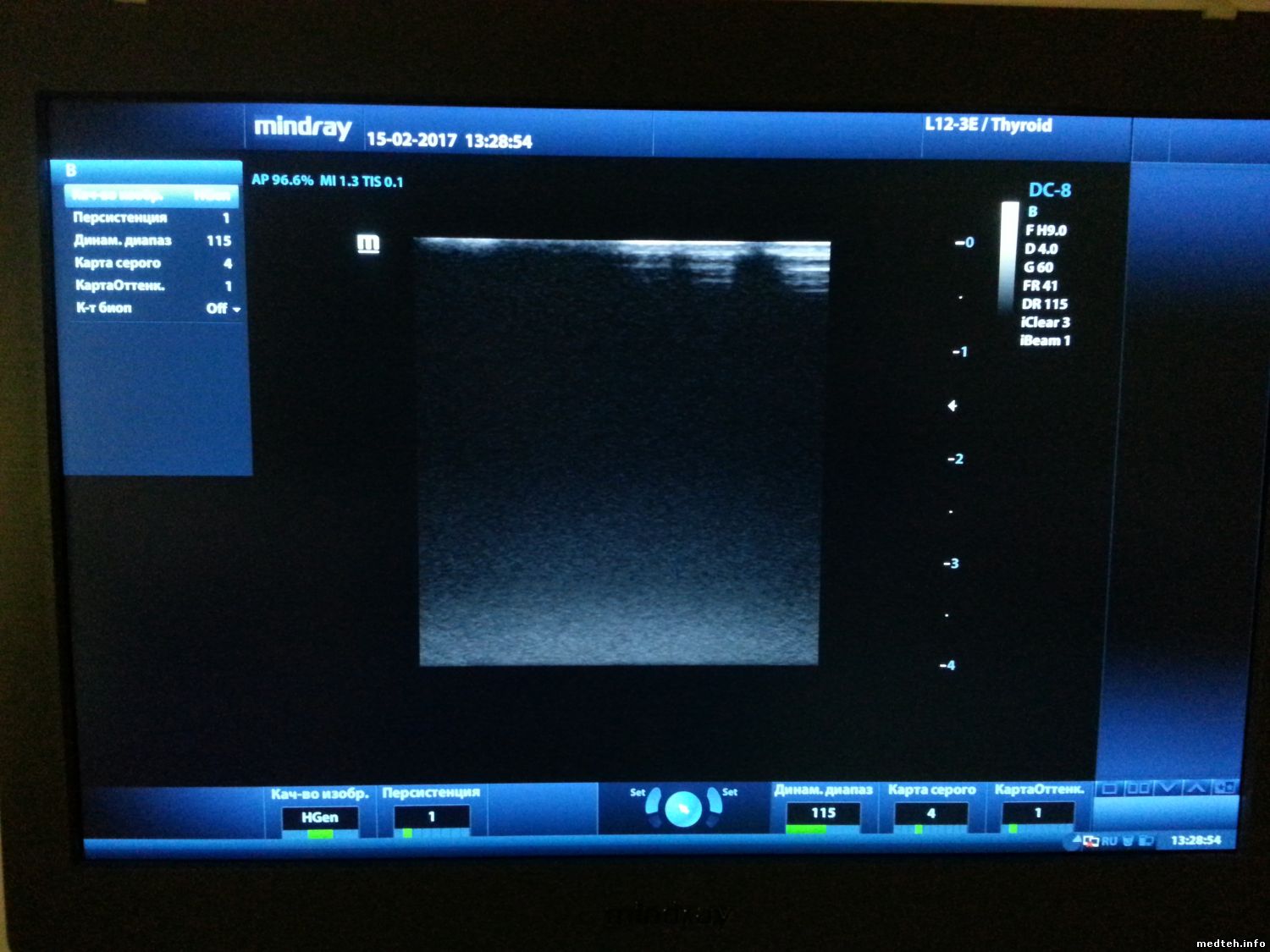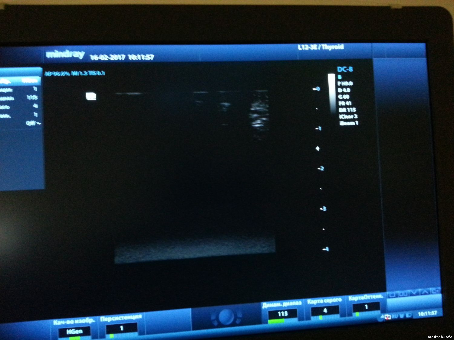 Есть аппарат Mindray DC-8 и проблемный линейный датчик L12-E3. Визуально на датчике, кабеле и коннекторе никаких повреждений нет, смена портов ни к чему не приводит, датчик при перестановке в другие порты ведет себя аналогично. Местный инженер, глянув на экран, диагностировал "что-то с кабелями, это не ремонтируется" и категорично прредложил приобретать новый датчик. Но меня терзают смутные сомнения. Может не кабель, а кристалл? Может возможен ремонт? Цепляю к посту фото рабочего экрана и ссылочку на маленькое видео работы датчика. Очень жду вашего диагноза.