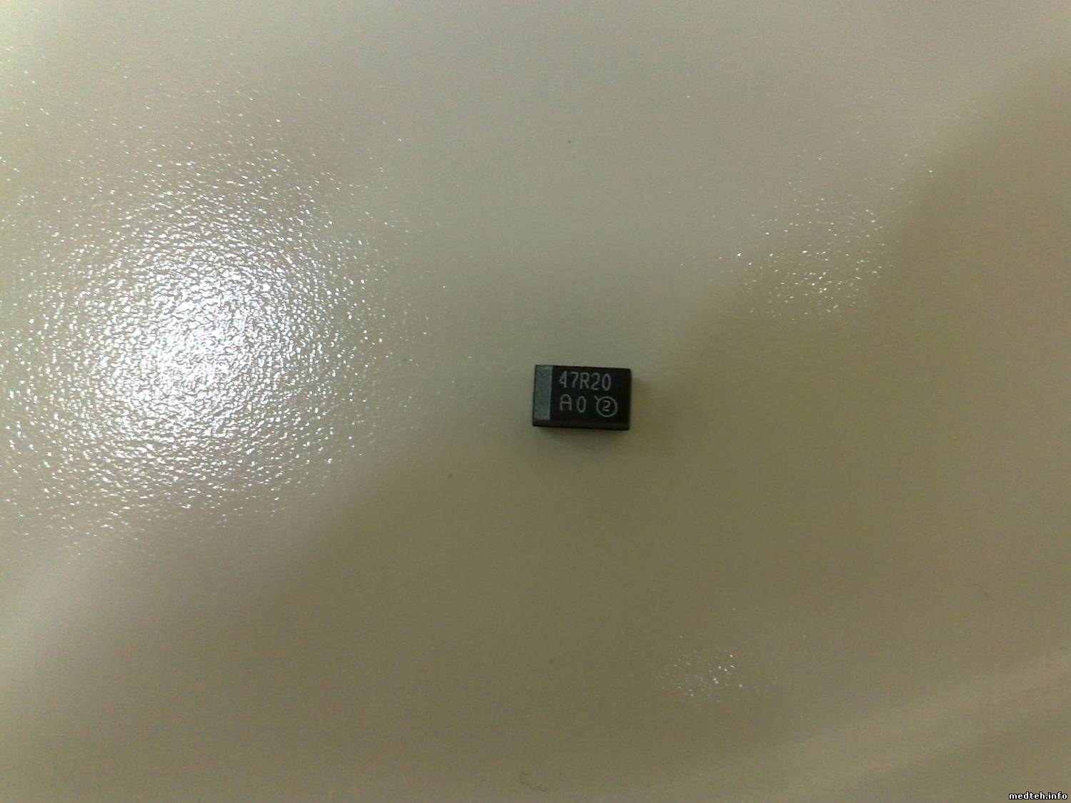 Танталовый конденсатор 47 мкФ - 20 в - судя по маркировке. Необычный дефект при отсутствии одного конденсатора по питанию. Хорошо что нашли - а иначе можно было наплодить теорий по поводу такой работы аппарата.