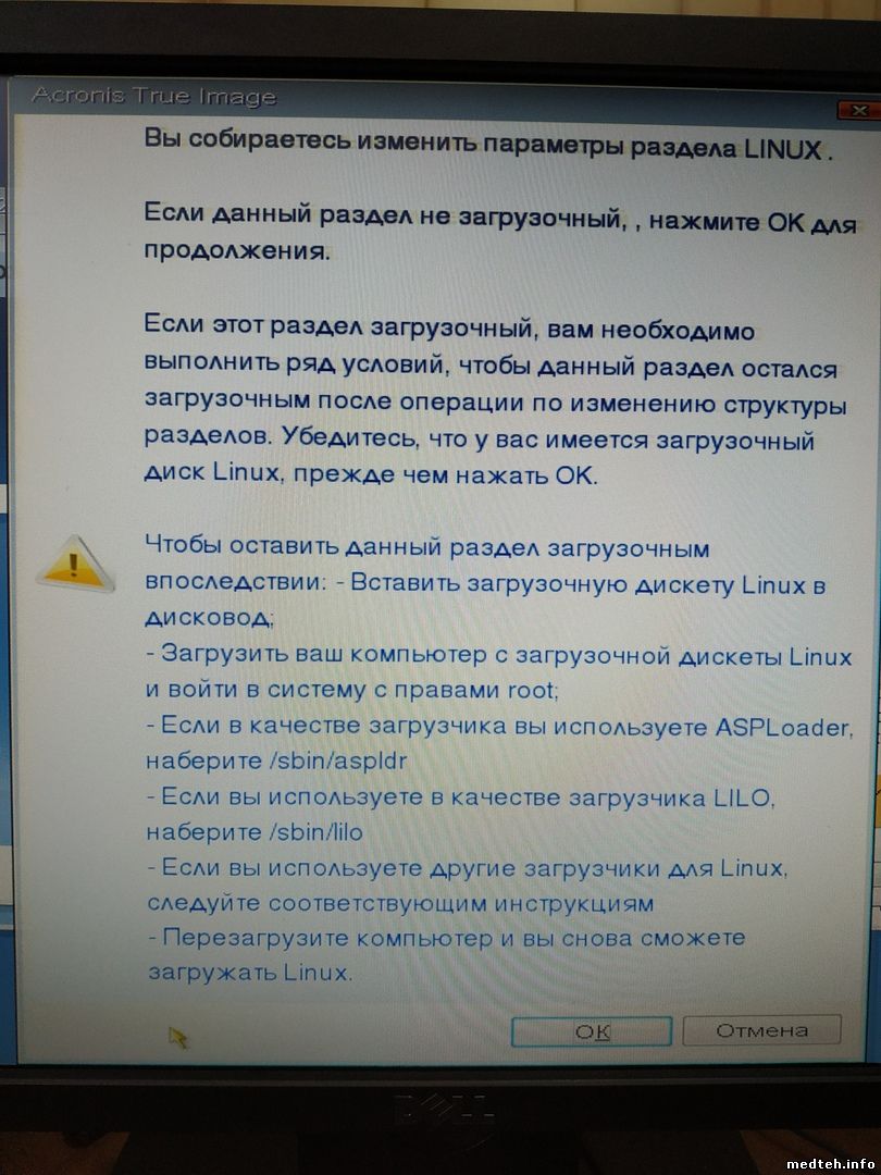 "Вы собираетесь изменить параметры раздела LINUX,