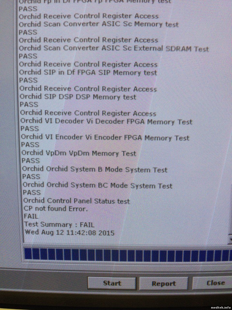 Добрый день. Возникла проблема с аппаратом Siemens sonoline G40. Перестали работать кнопки и подсветка на передней панели управления с подсветкой, работают только трекбол и кнопки Set и Escape. На нажатие остальных кнопок нет реакции. Буквенно-цифровая клавиатура работатет нормально. При включении и загрузки аппарата ошибок не выдается. Диагностический тест через ПО Siemens выдал сбой (видно на скриншоте) при тестирование: