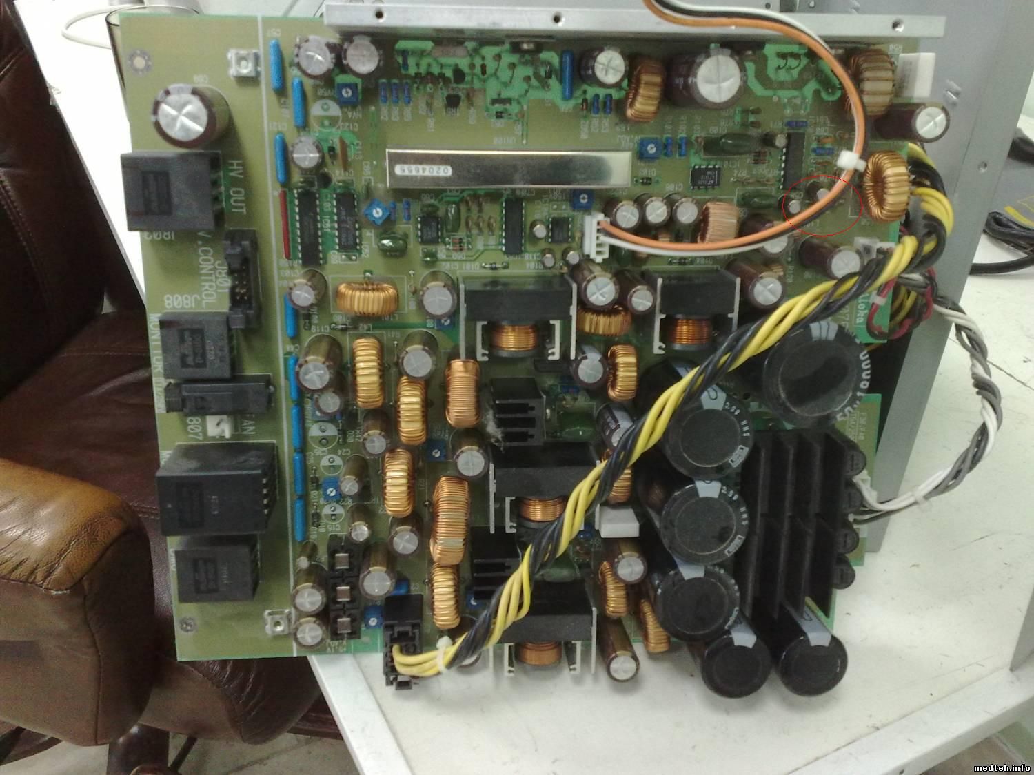 -хотел бы спросить по поводу аппарата алока ссд 1400 была следующая неисправность .не была напряжение -150 вольт на клемме .при вынимания платы самой крайней куда вставляются сами датчики напряжение появилось -150вольт .именно на этой плате обнаружил что одна из микросхем HV20220PJ (эта 8 канальный высоковольтный переключатель---мультиплексор )была неисправная .заменил её на исправную появилось напряжение -150 вольт и при прикосновение к датчикам начал показывать нормальное изображение .но вверху где начинается колокол смущает дугообразные линии ----хотел бы у вас попросить разобраться в этой ситуации .и еще это проявляется на обоих датчиках .