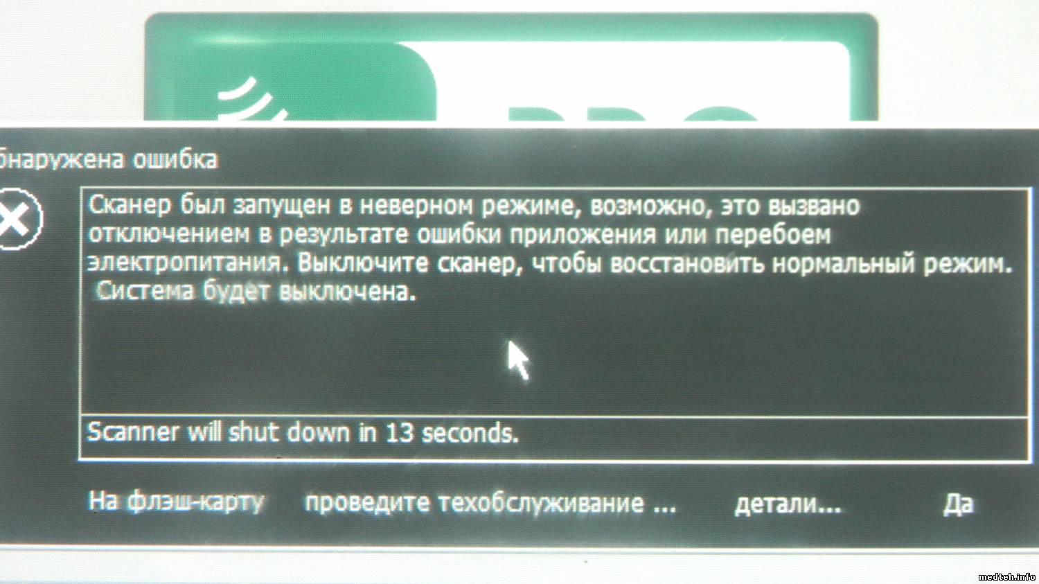 С блоком так и не разобрался. Винт подкидывал другой. так что я думаю с програмным обеспечением порядок. При загрузки пишит -Сканер был запущен в неверном режиме возможно это вызвано отключением в результате ошибки приложения или перебоем электропитания. Выключите сканер .чтобы восстановить нормальный режим. Система будет выключена. Снизу надписи несколько кнопок запись на флеш.проведите техобслуживание,детали. Так вот я нажал кнопку детали и вышла страничка типа журнала ну я так понял и в таком состоянии он стоит включённый уже часа 3. Я не понял что за неверный режим и почему он не отключается? Вот фото.