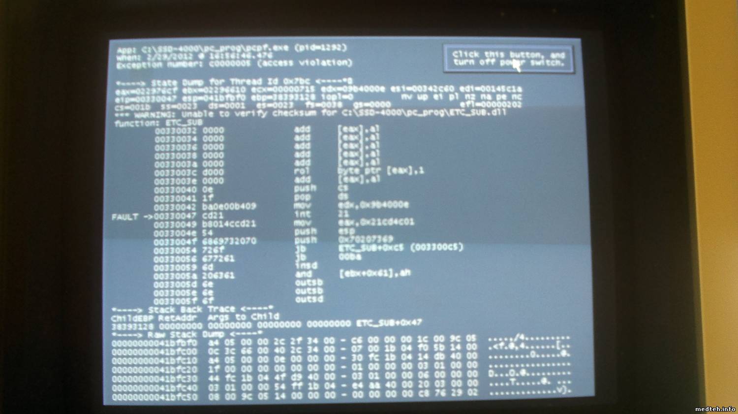 Ещё хочу обратить внимание на то, что обращение происходит почему то по пути, начинающегося с G, которого не должно быть в УЗИ аппарате (там C и D) должно быть, т.е как будто изменился по какойто причине путь, но где и почему? см. скрины. И ещё как войти в биос ? DEL, ESC, F2 не работают.