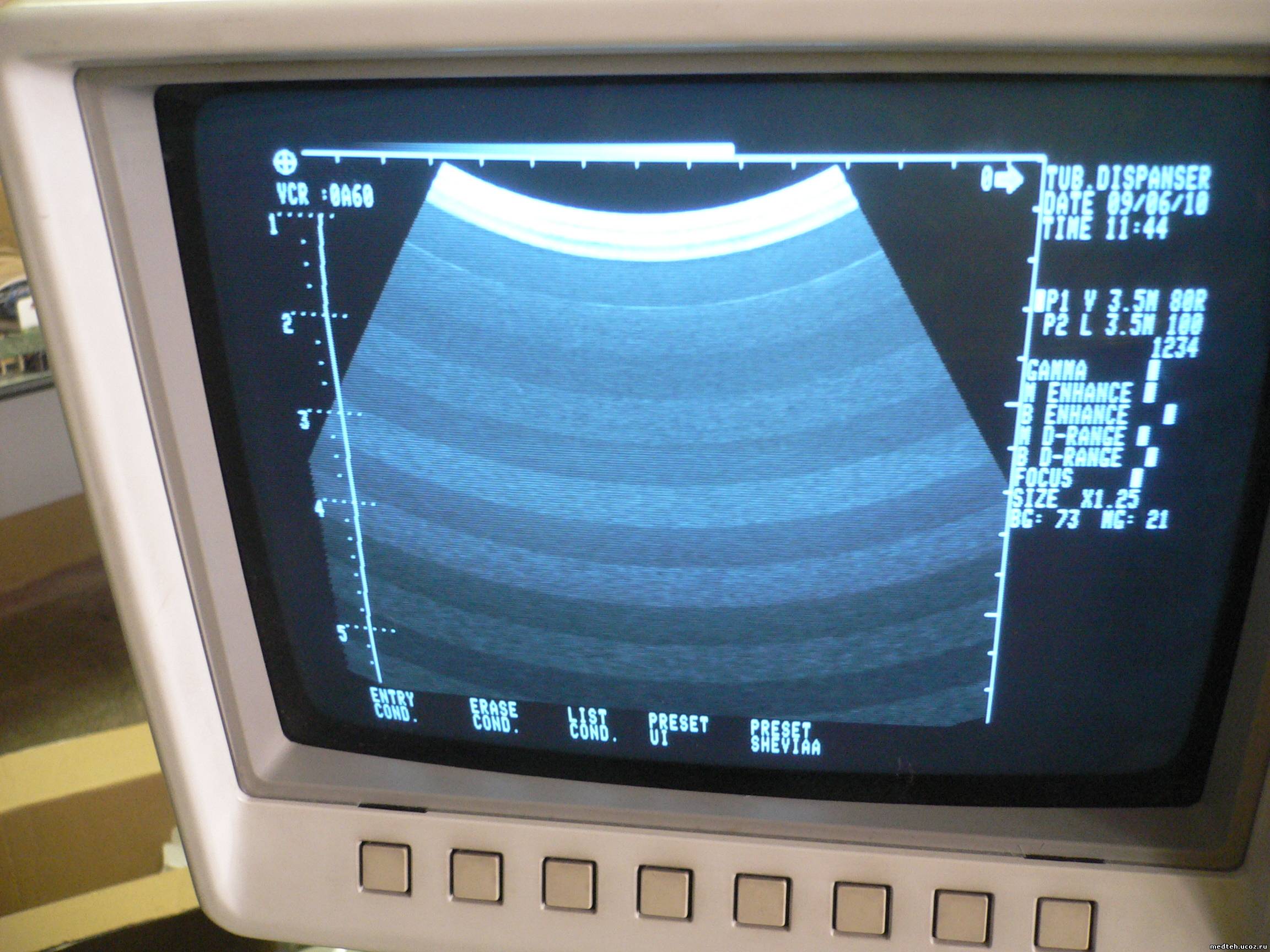 есть данный приборец, работающий не менее 12 лет. при включении на экране есть служебная информация, но пропадает сектор. видно самое его начало, а потом весь экран черный. то же самое с линейным датчиком. если приложить к телу, то там где должно быть изображение появляются какие то вспышки. подкинуть датчики нет никакой возможности ввиду древности прибора. просмотрел все платы, ничего плохого не заметил. блок питания в норме. мысли кончились. главный вопрос может есть у кого мануал или кто знает как войти в сервис?