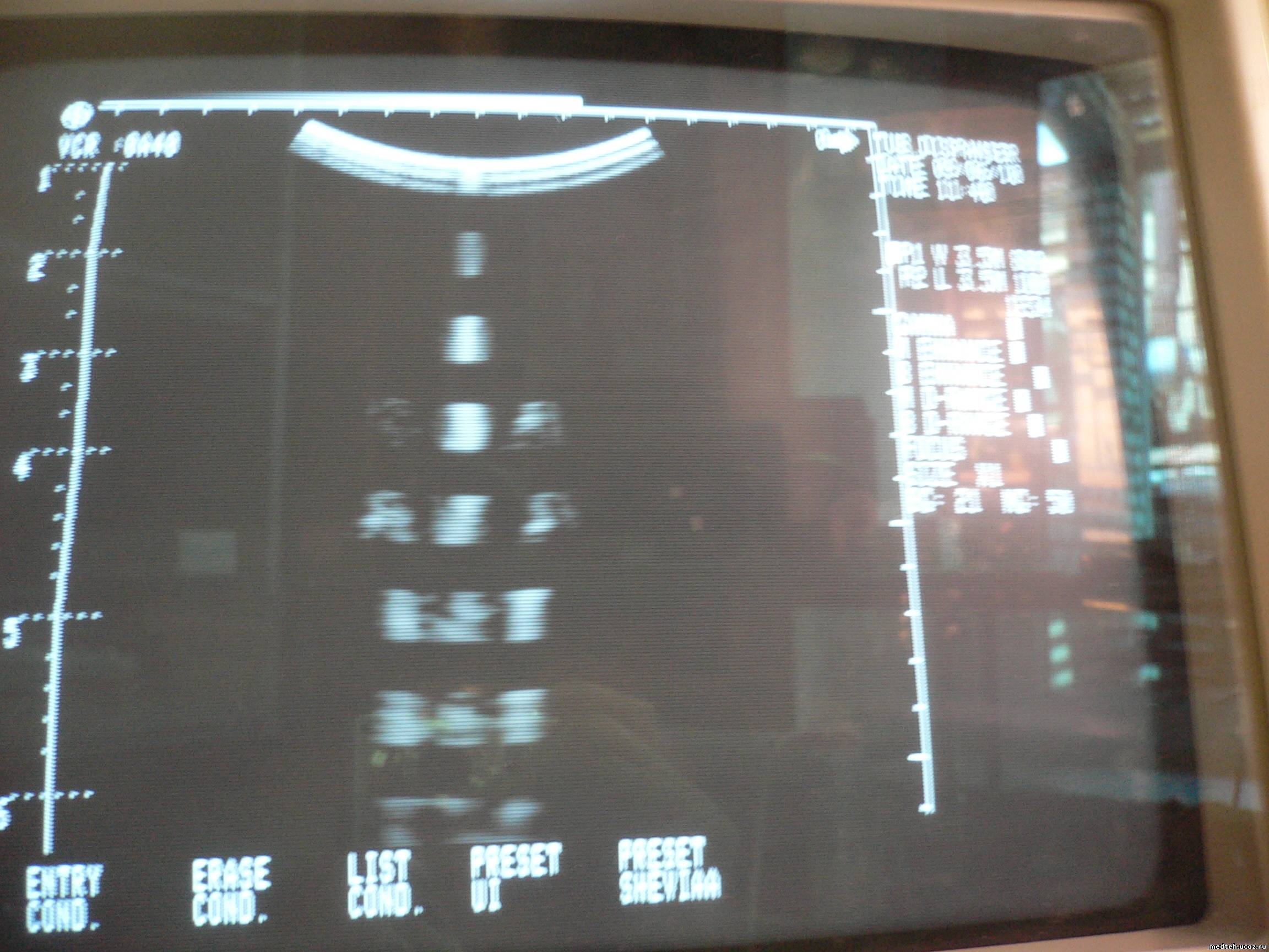 если сканировать живот с гелем видно это см. фото 2: непонятно почему нет низа картинки ... если прислонить излучатель к металлу низ сразу появляется очень четко .